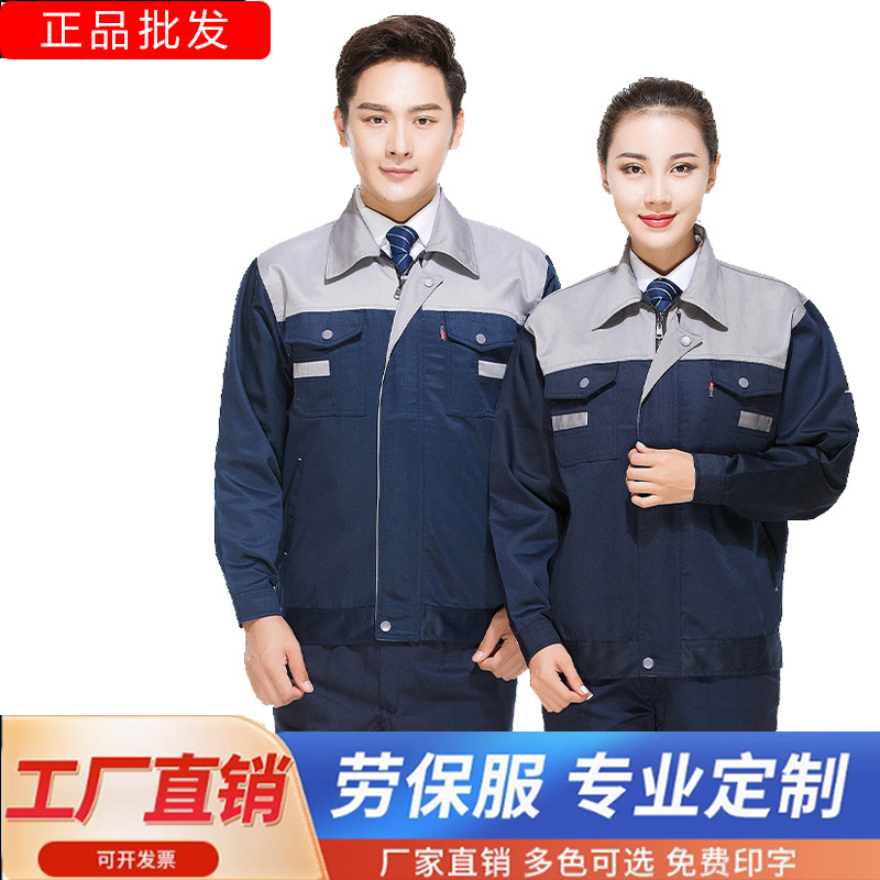 春と秋の長袖カラーブロック作業服スーツ、冬労働保護服、耐摩耗性自動車修理服、工場服、刺繍作業服
