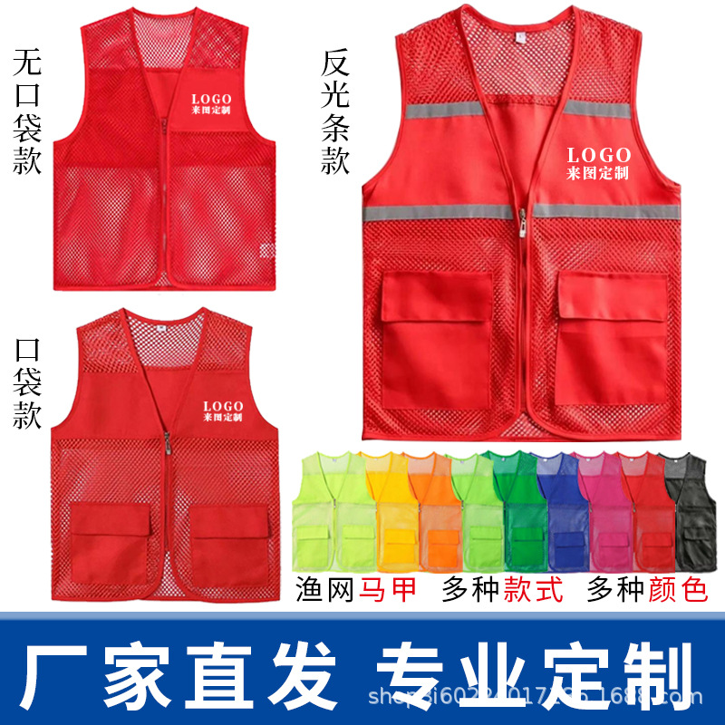 ボランティア馬甲カスタム作業服印字ロゴ広告シャツ屋外ボランティア赤馬クリップカスタムベスト卸売り