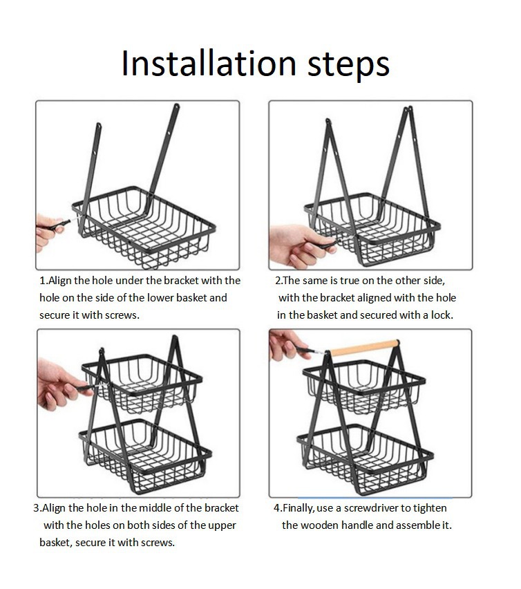 既製品の鉄製収納フルーツバスケット、ワードローブ用二段・三段バスケット、リビング・キッチン用パン収納バスケット、収納ラック
