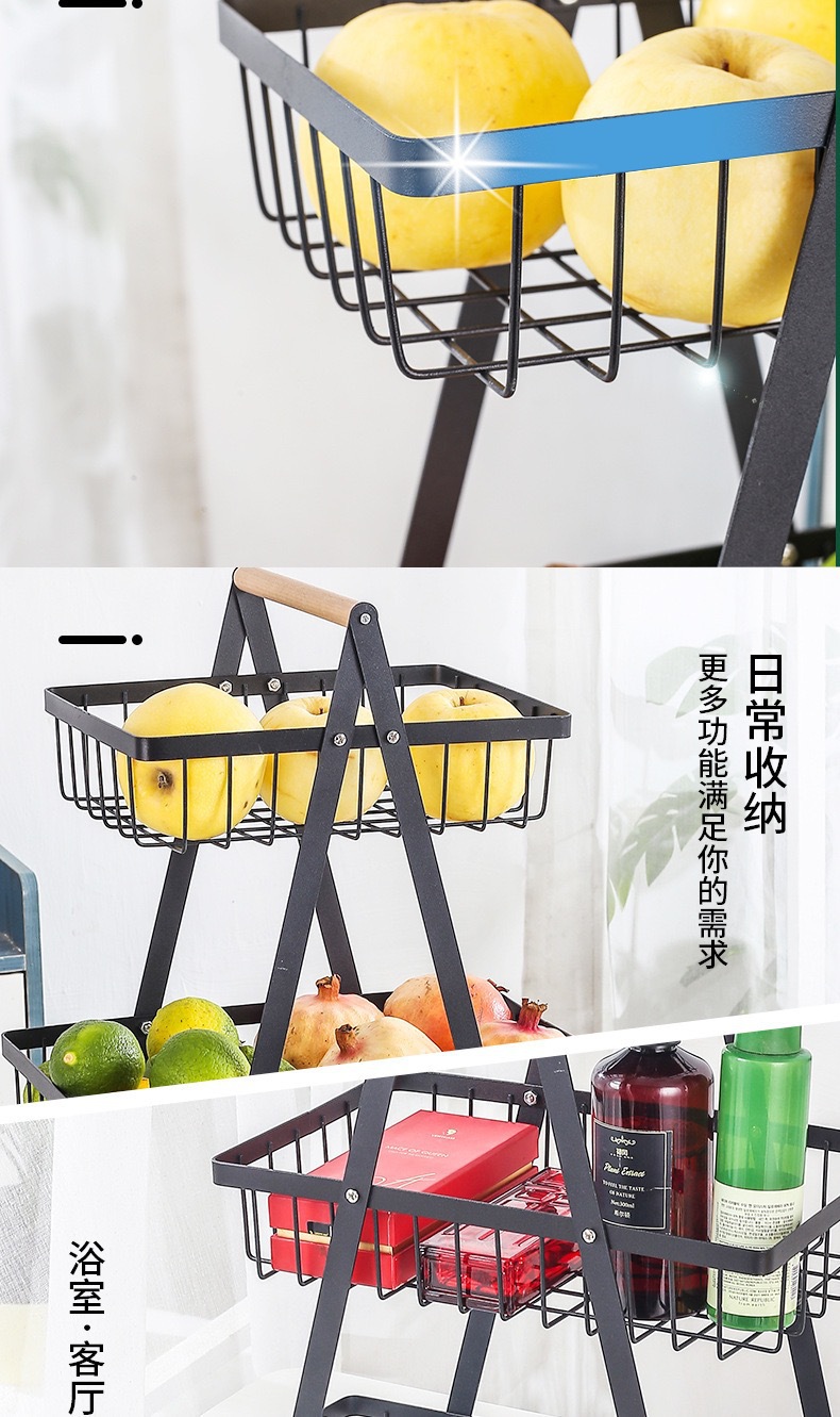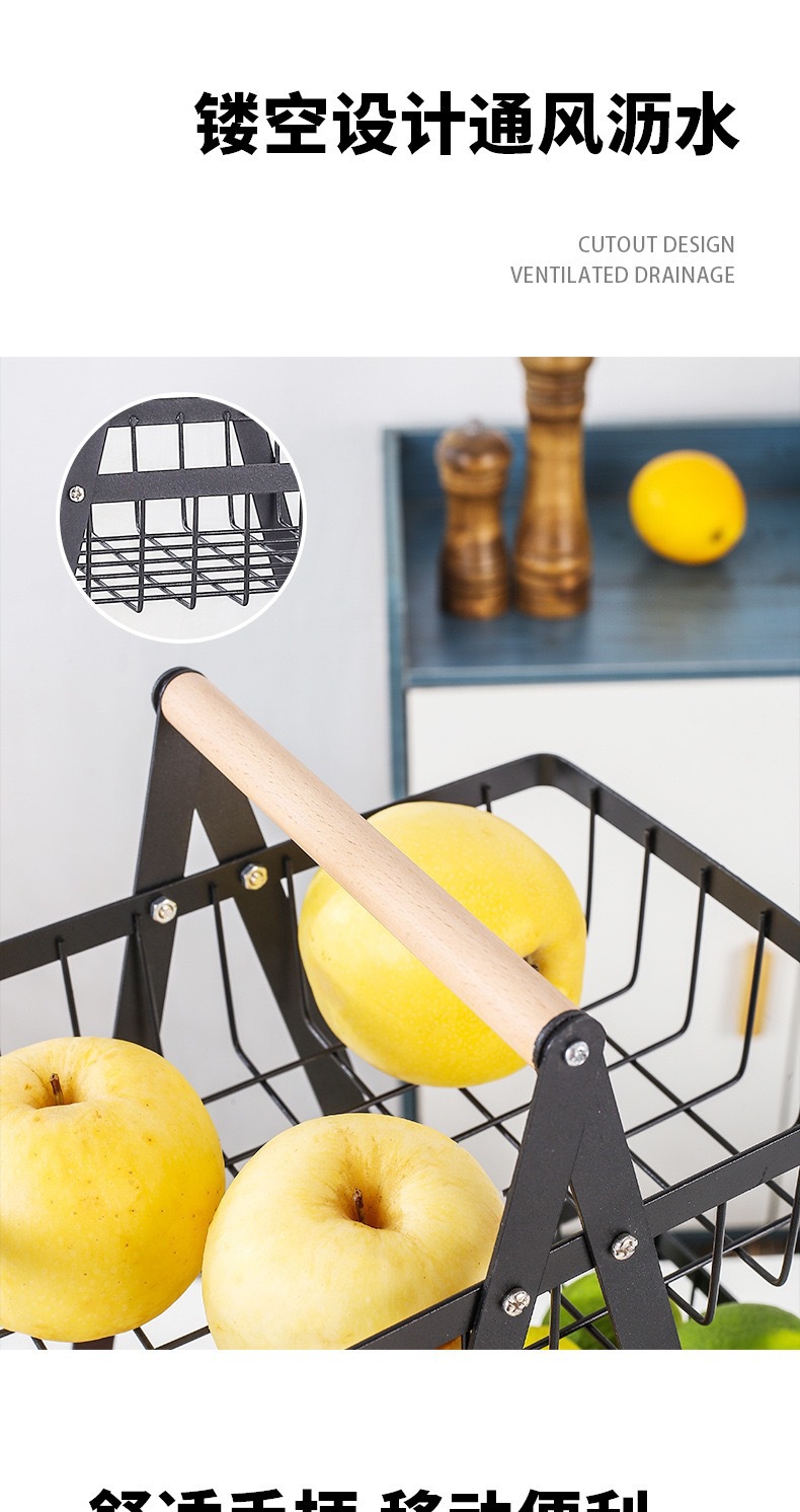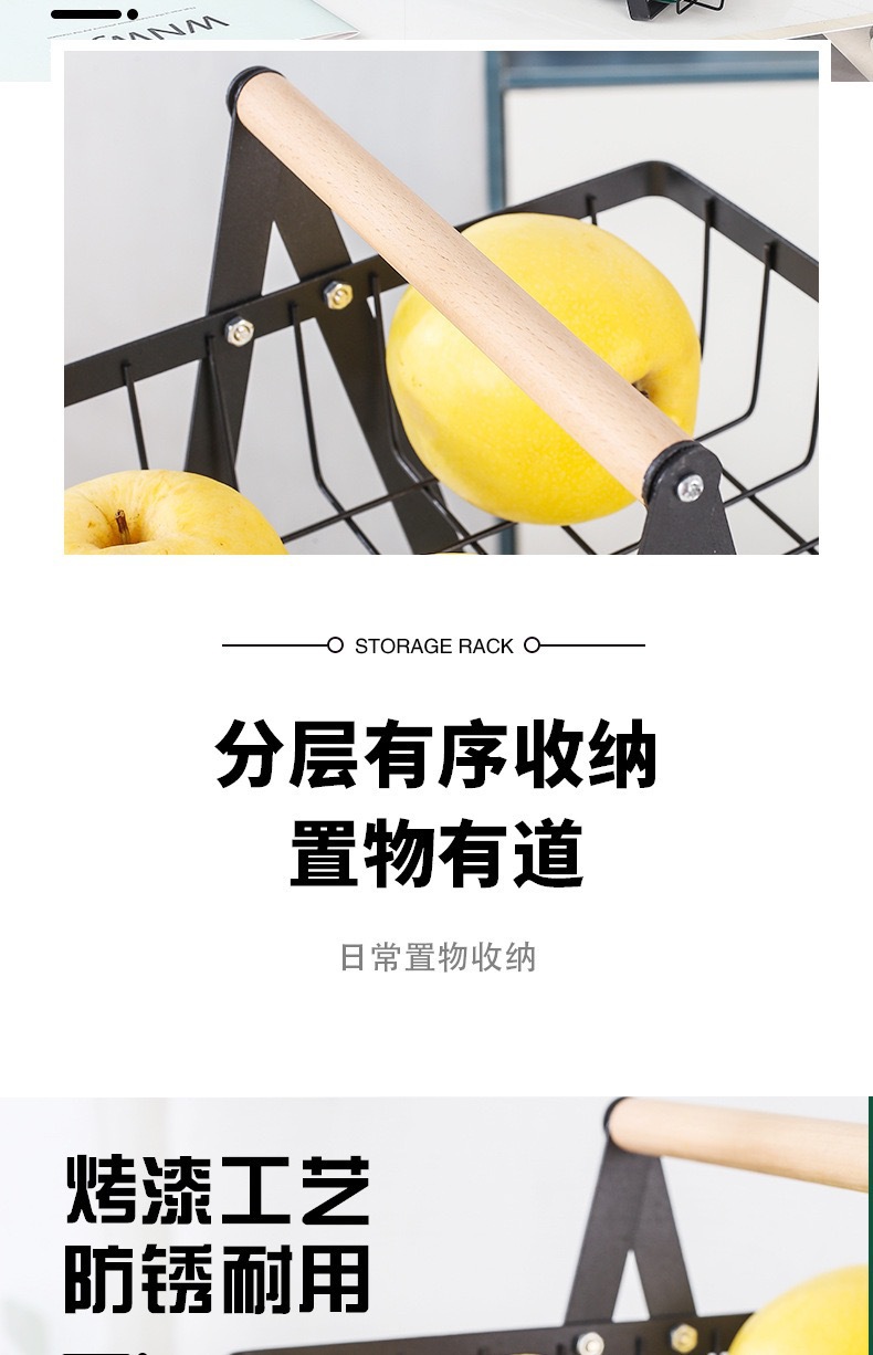 零售水果篮铁艺双层三层木质手提篮客厅厨房蔬菜收纳篮置物架子