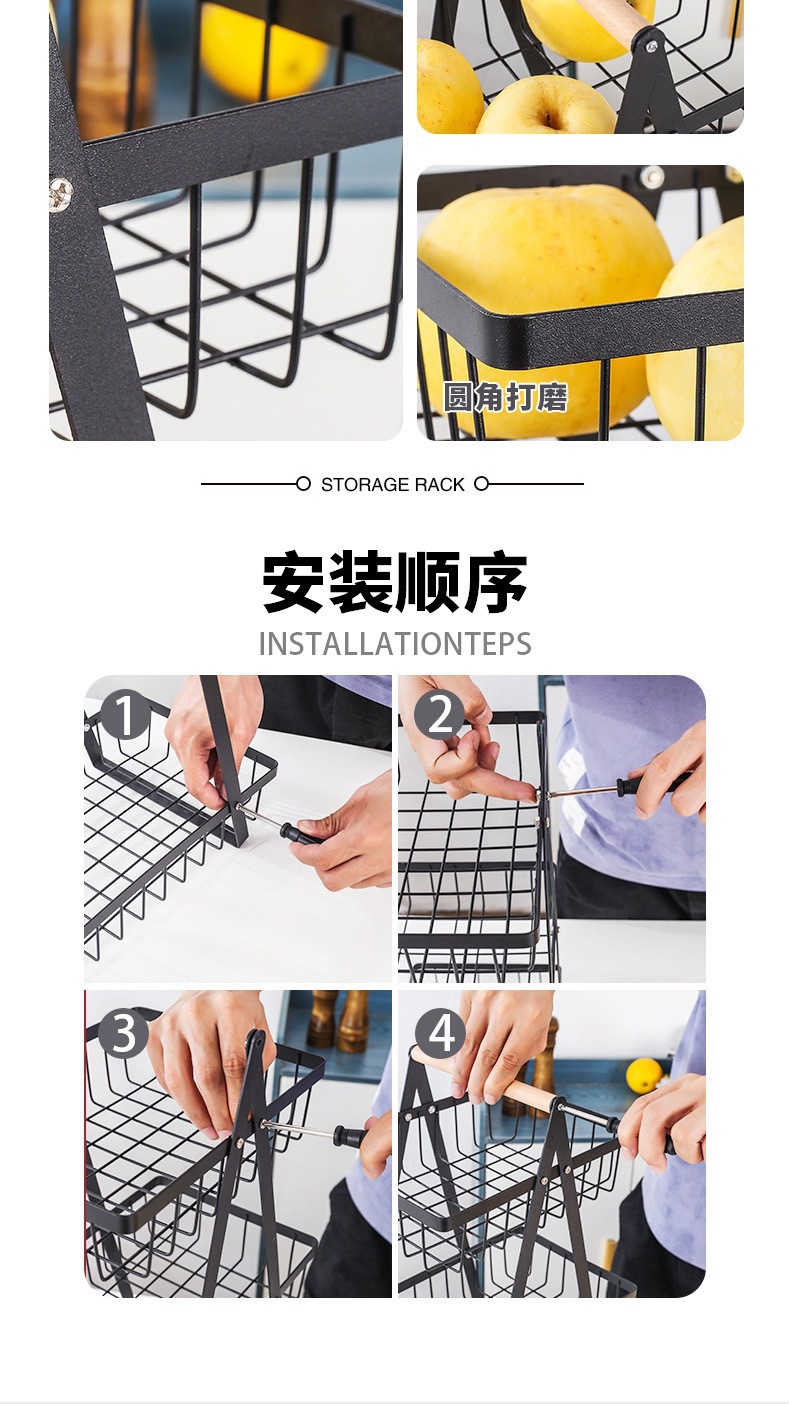 国境を越えた物棚果物バスケット二重多機能収納バスケット間食収納果物三層収納バスケット対外貿易