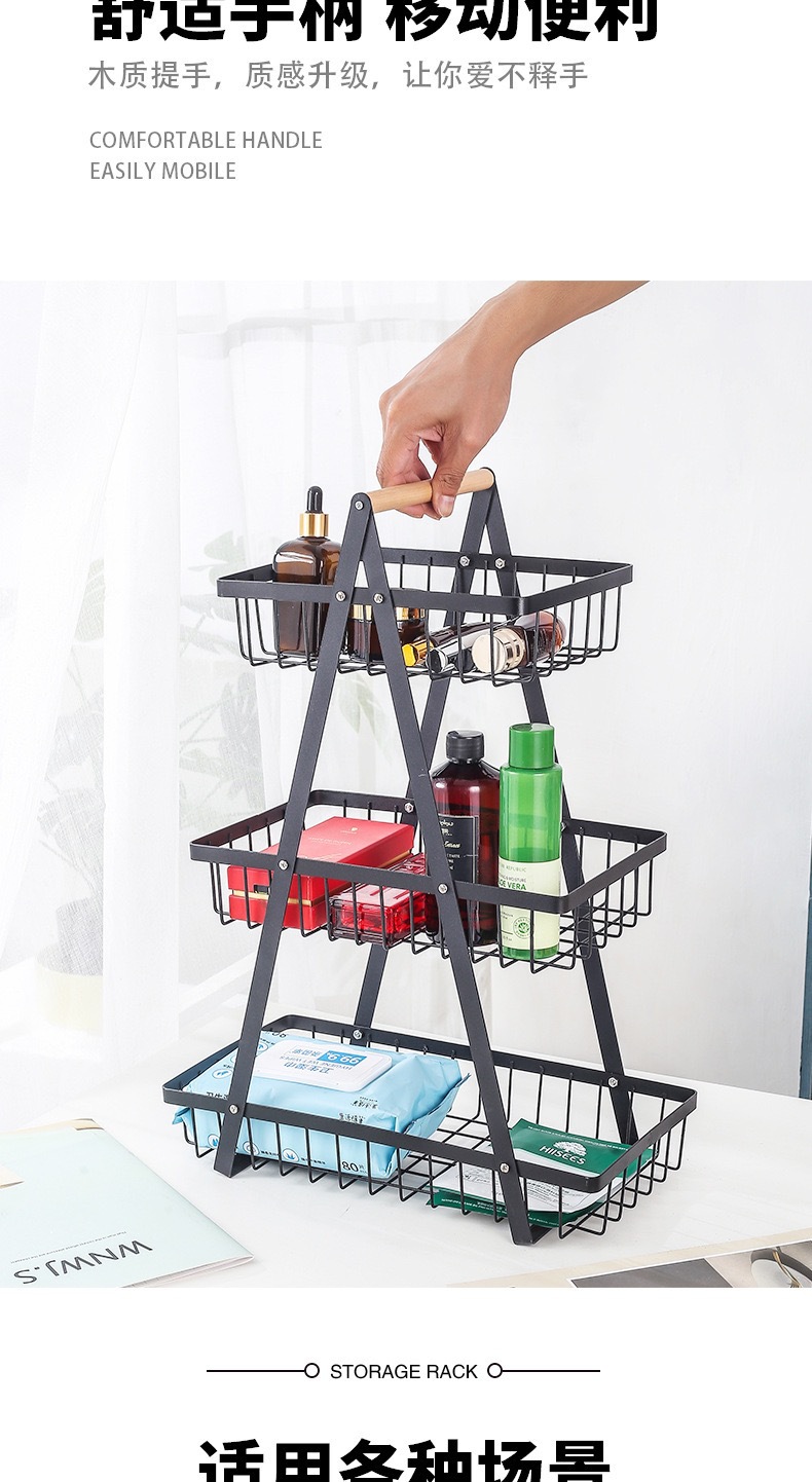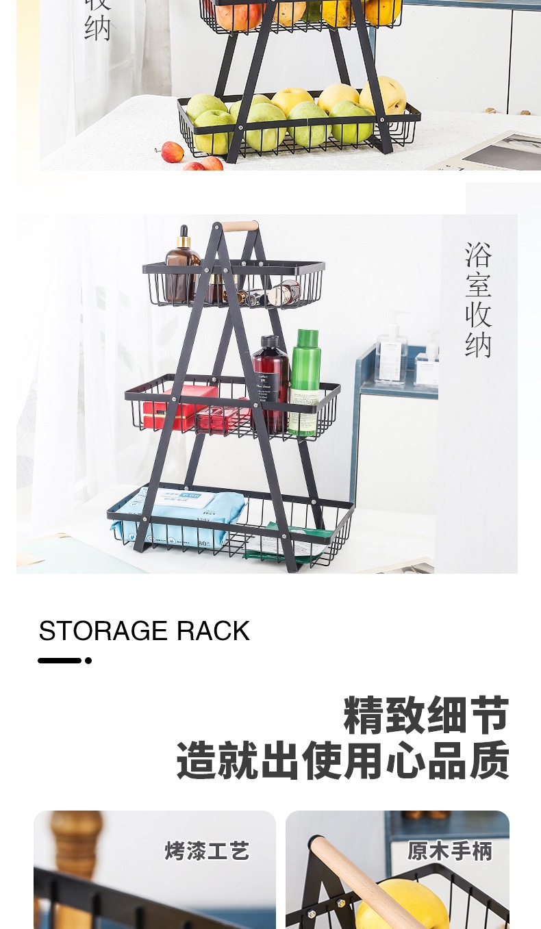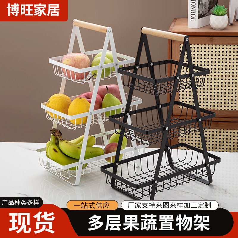 国境を越えた新型木製手提げバスケット鉄芸多機能フルーツバスケット台所多層間食収納棚卸売り