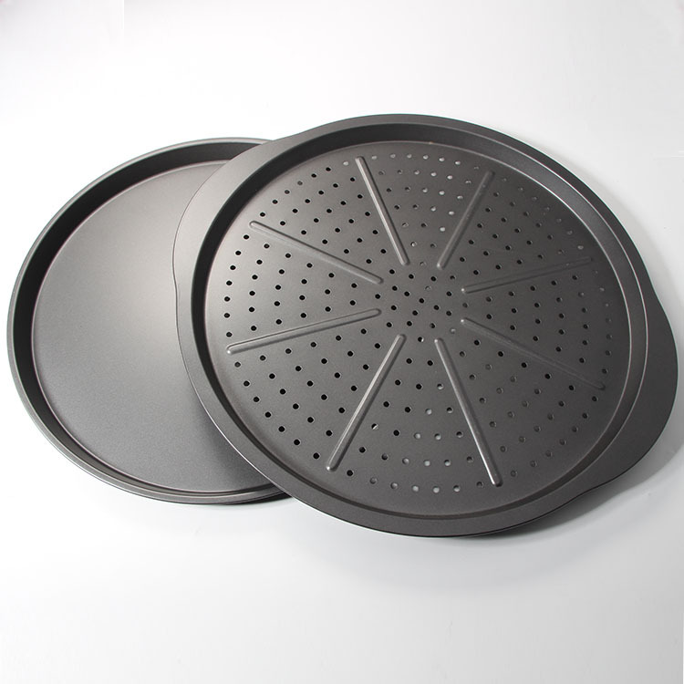 32cm圆形披萨盘和38cm带孔带耳朵不粘浅烤盘家用烘焙用具