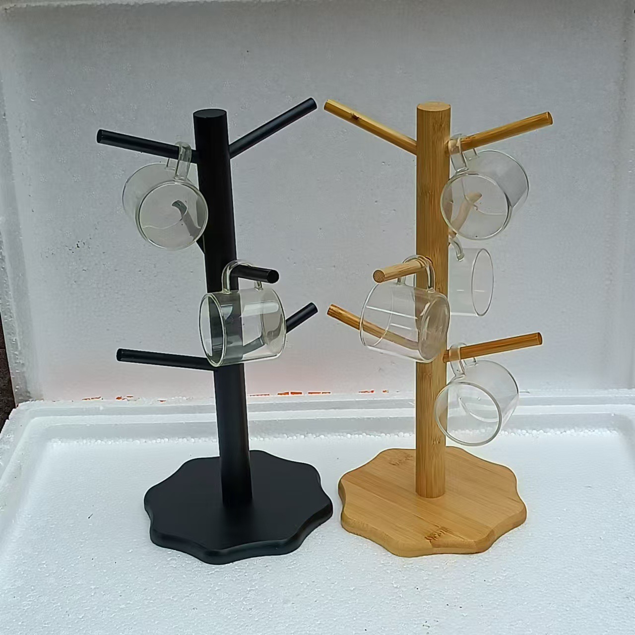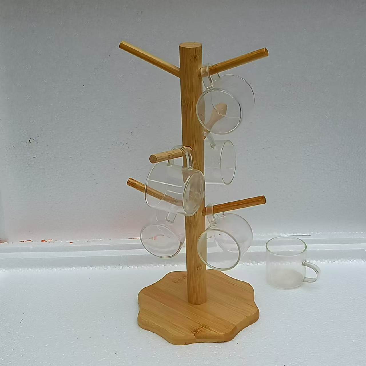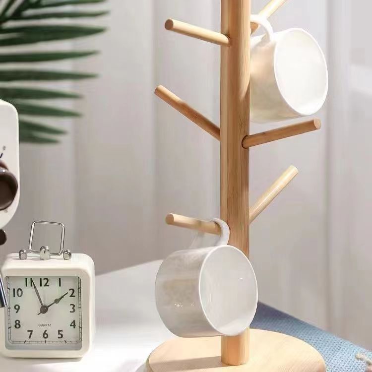 竹ツリー型マグカップホルダーリビングルームキッチンカップ収納ラック木製デスクトップコーヒーカップ収納ラック