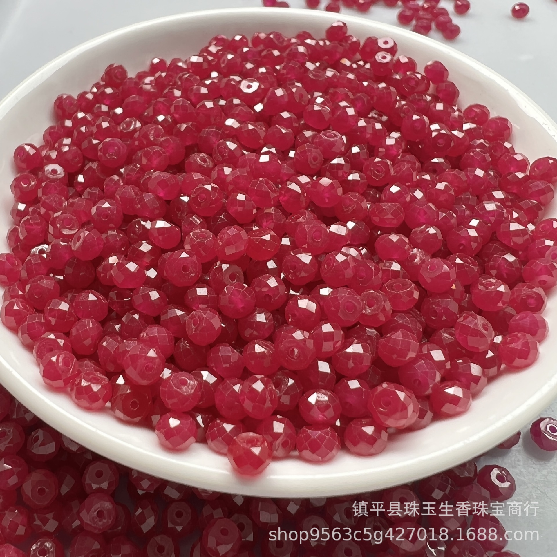 天然赤コランダム玉そろばん玉彫刻面ルビー隔珠スペーサービーズDIYビーズ編みブレスレットネックレス飾り