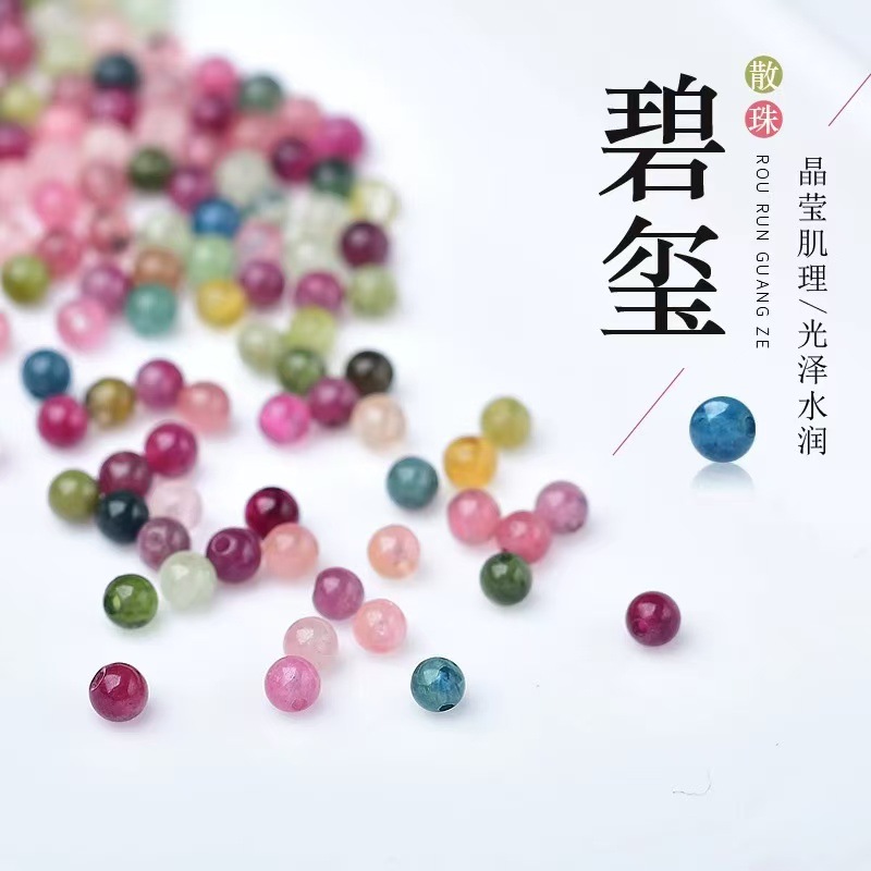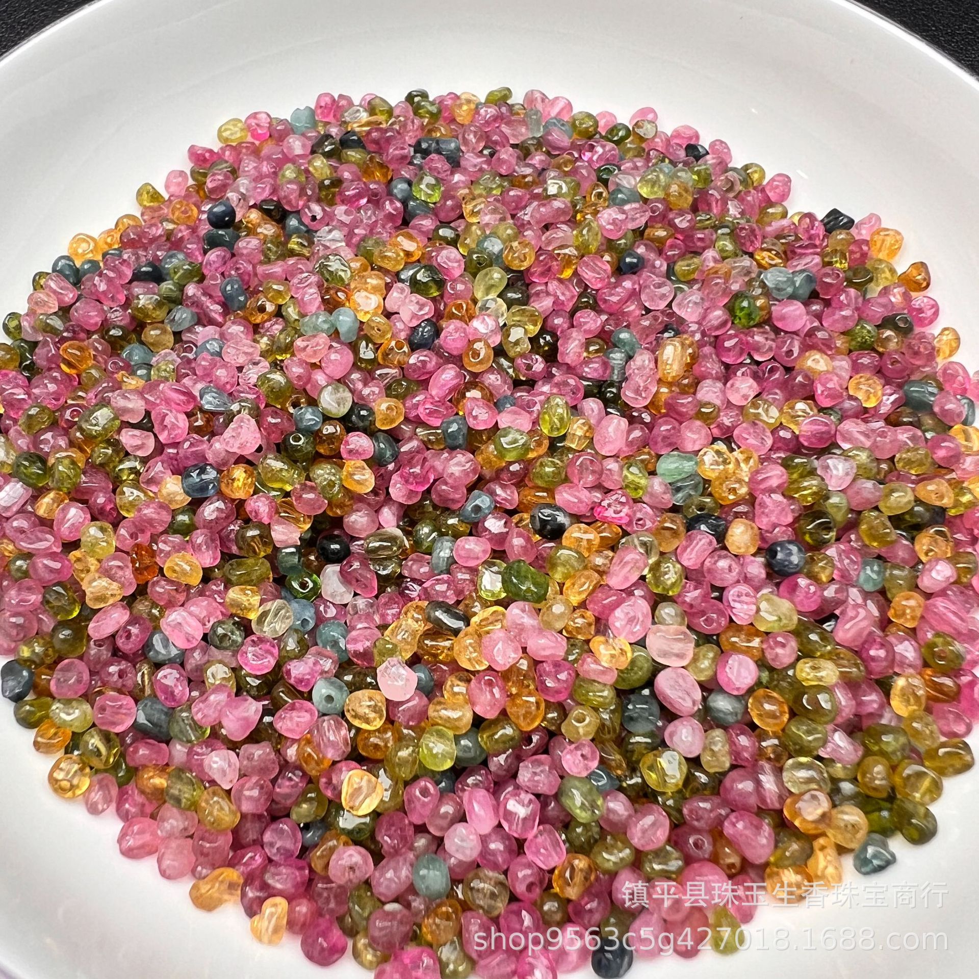 天然碧玺散珠水晶糖果色七彩小米珠圆珠饰品串珠diy戒指配件批发