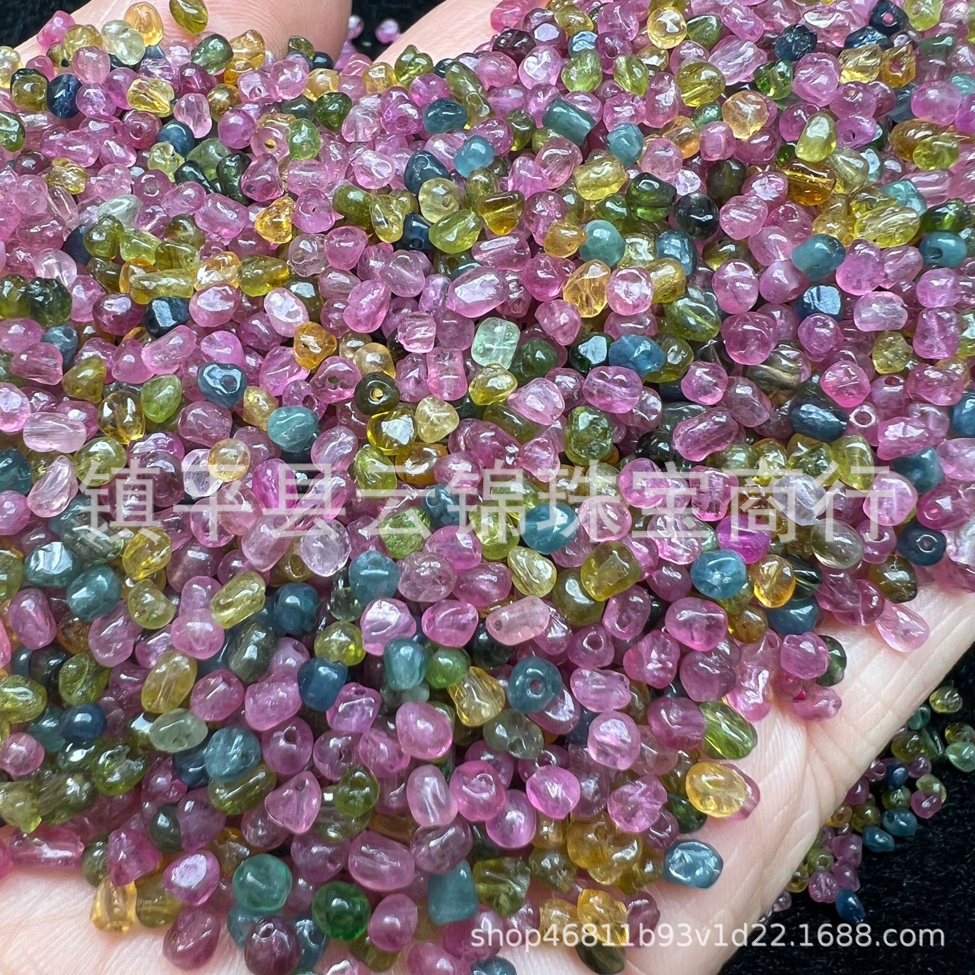 天然鉱物トルマリン、天然石、小さな砂糖粒、砕いた銀、DIYブレスレット、キャンディー、不規則なトルマリンバッチ