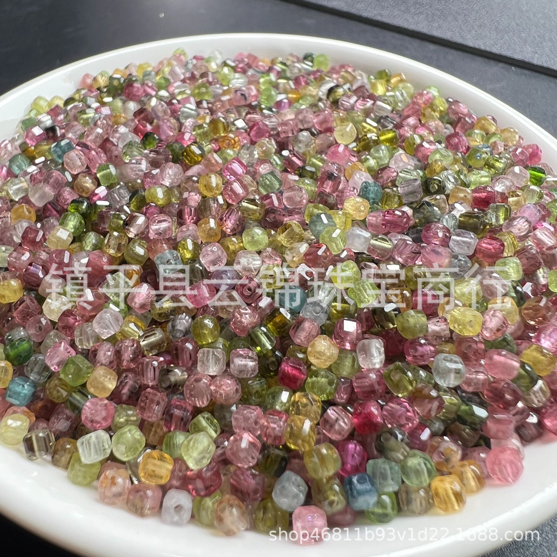 2mm天然ブラジルキャンディーカラー碧璽方糖半製品散珠ブレスレットネックレス鎖骨鎖隔珠配珠diy