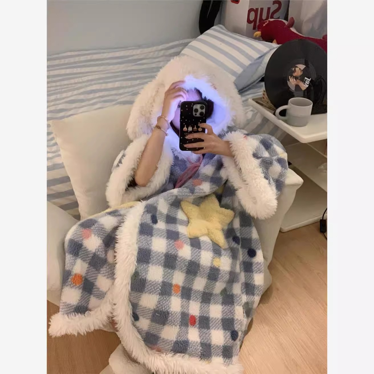 2025年新款可爱卡通米奇秋冬季睡袍女加绒加厚保暖斗篷家居服套装