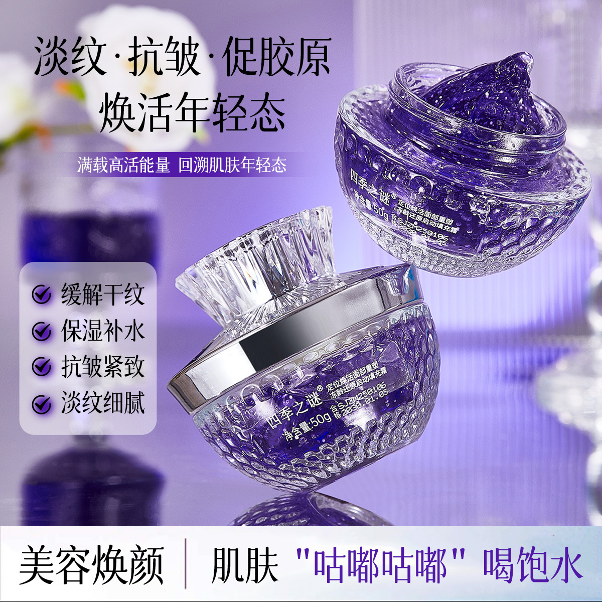 四季の謎は顔を活性化させて凍らせた年齢を復元してクリームを充填する50gメーカー直販スポットを起動する