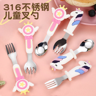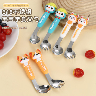 子供316ステンレススプーン肘フォークスプーン赤ちゃん補助食器スプーン頭フォーク半製品金物