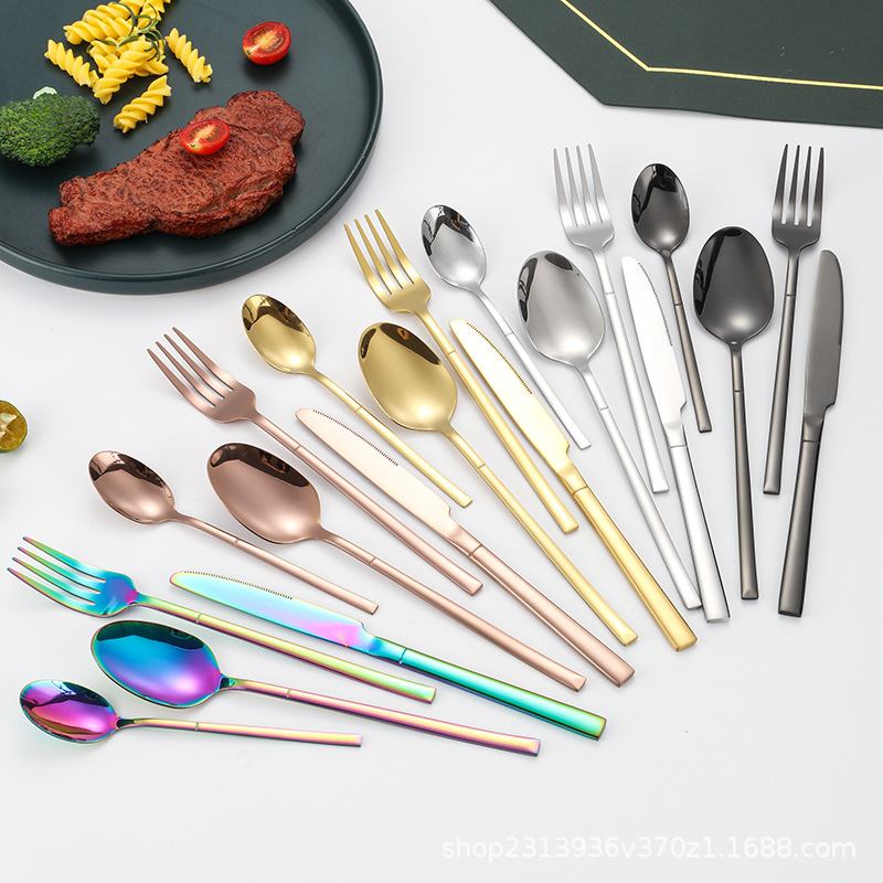 跨境不锈钢餐具 骑士套装 西餐酒店牛排刀叉勺 甜品勺礼品四件套