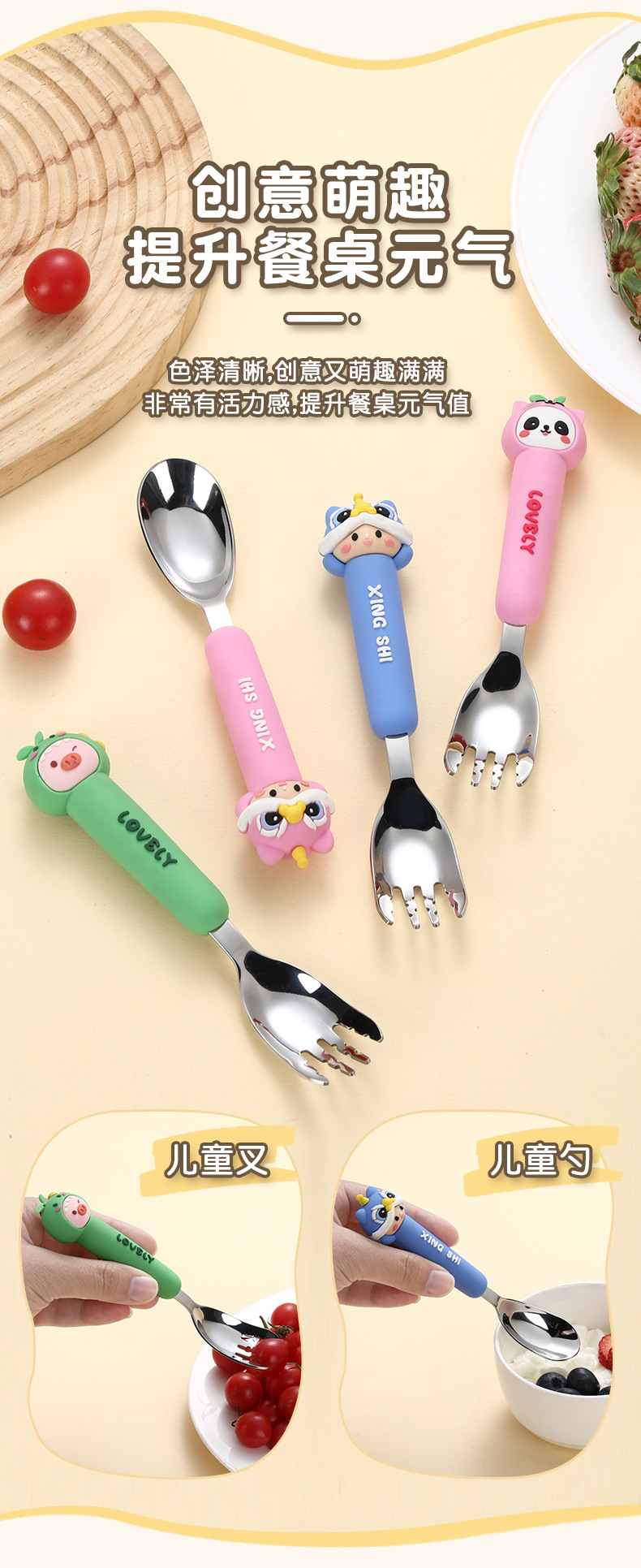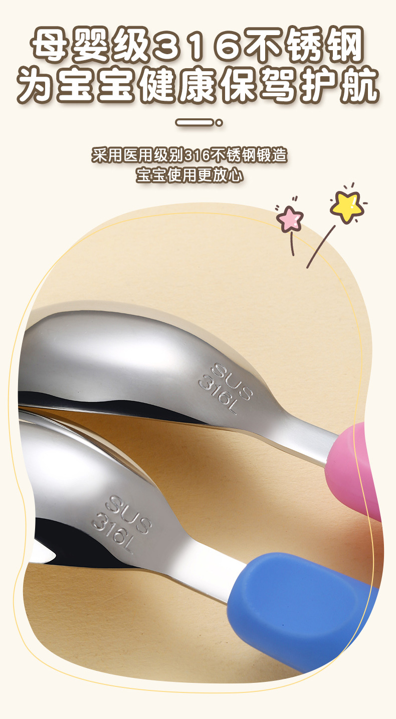食品级儿童勺子316不锈钢辅食叉可爱学吃饭短勺叉儿童餐具自主进