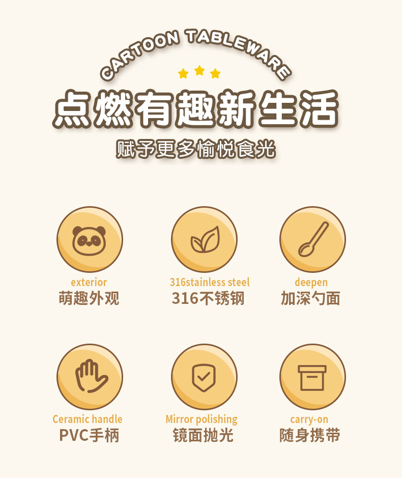 ステンレス316スプーン学生アニメ創意児童かわいい元宝スプーン家庭用赤ちゃんに食事を与えてスプーンを深める