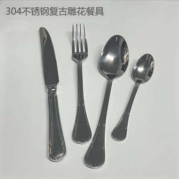 304不锈钢复古雕花桃心西餐具刀叉勺四件套酒店餐厅家用牛排刀叉