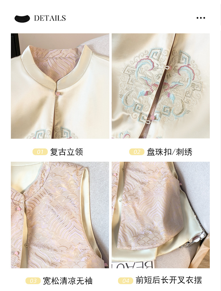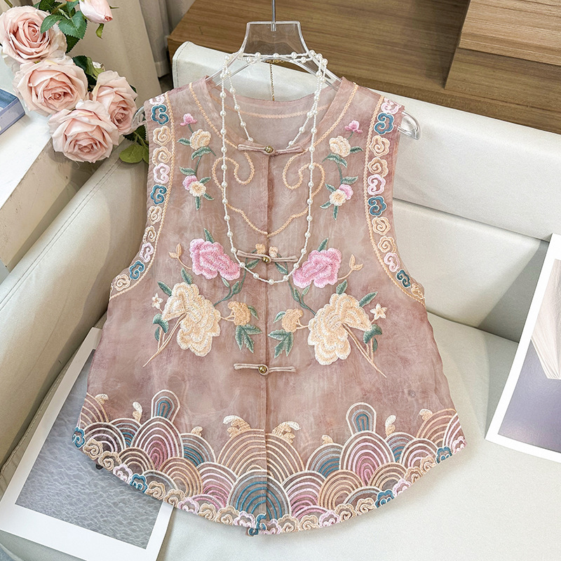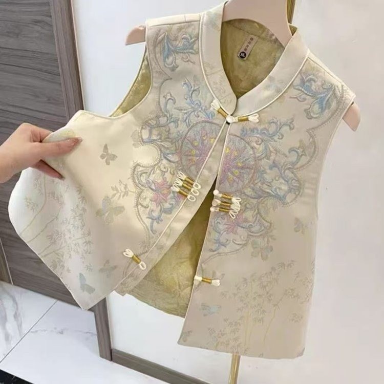 [Ruyi] 重工業刺繍の新しい中国風のベスト、女性用夏の薄いベスト、レトロなボタン付きの国民的トレンドのベスト