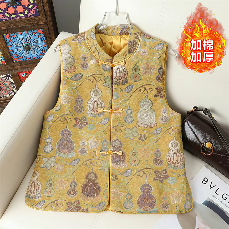 新中国式ジャカードベストレディース軽国風レトロ盤バックル唐装カンタン秋冬綿国潮馬挟みベスト