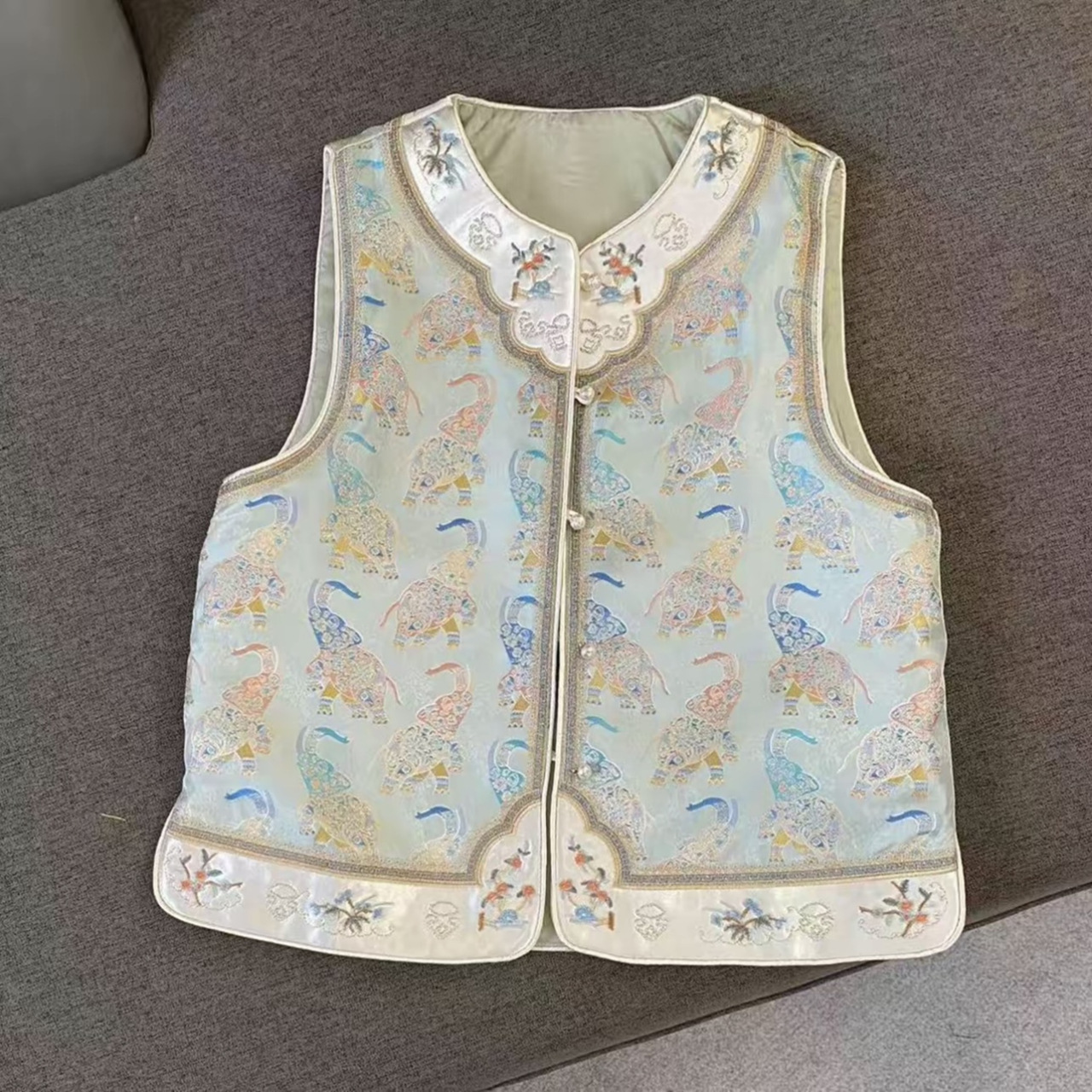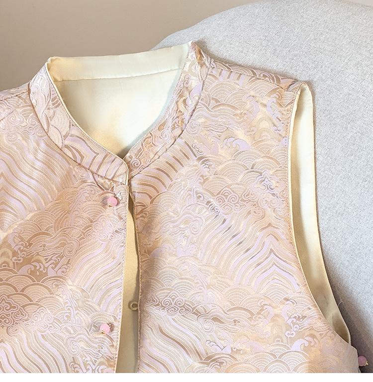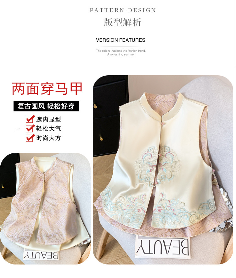 万象提花新中式国风马甲女装洋气刺绣双面穿马夹春秋气质百搭开衫