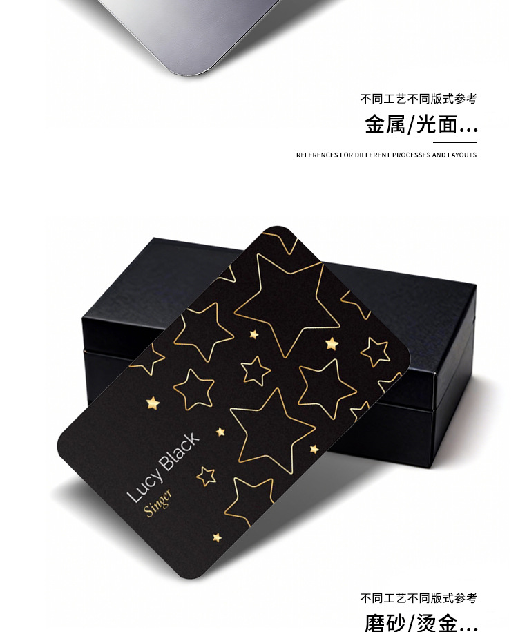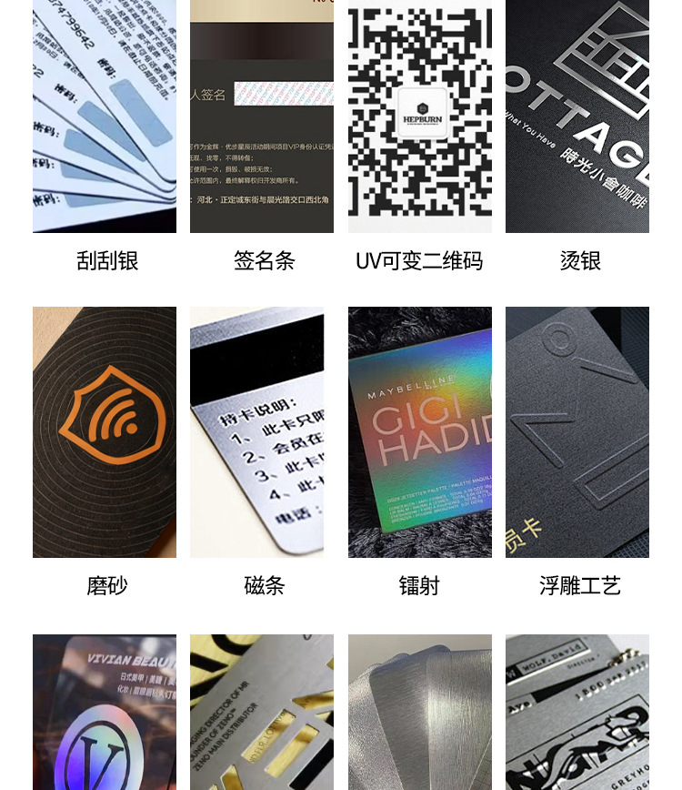 光面、哑光、磨砂工艺、烫金/银工艺、打孔、立体浮雕工艺等。