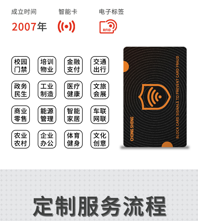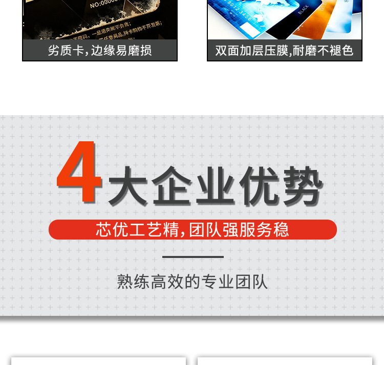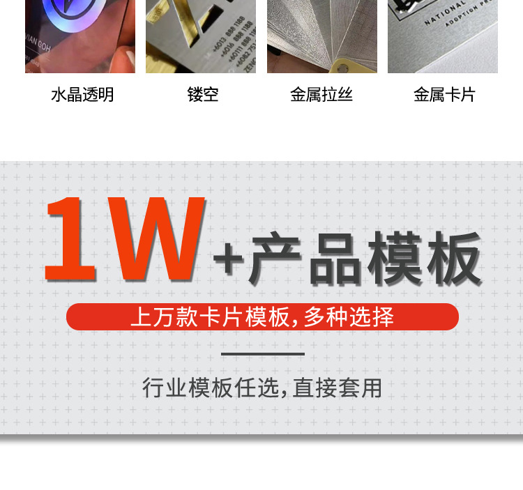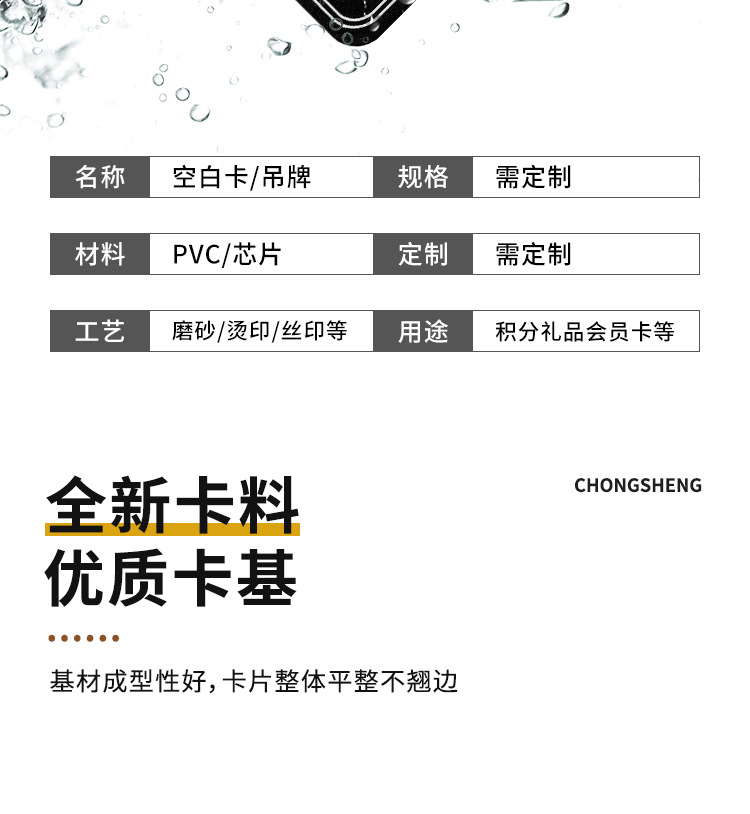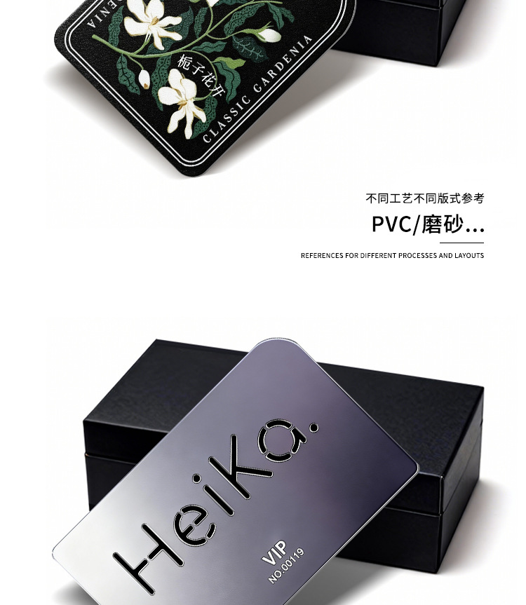 PVC材料(银行卡就是这种材料)、PET材料(耐高温vip卡)、ABS(环保服装吊牌)、透明材料、 拉丝等材料。