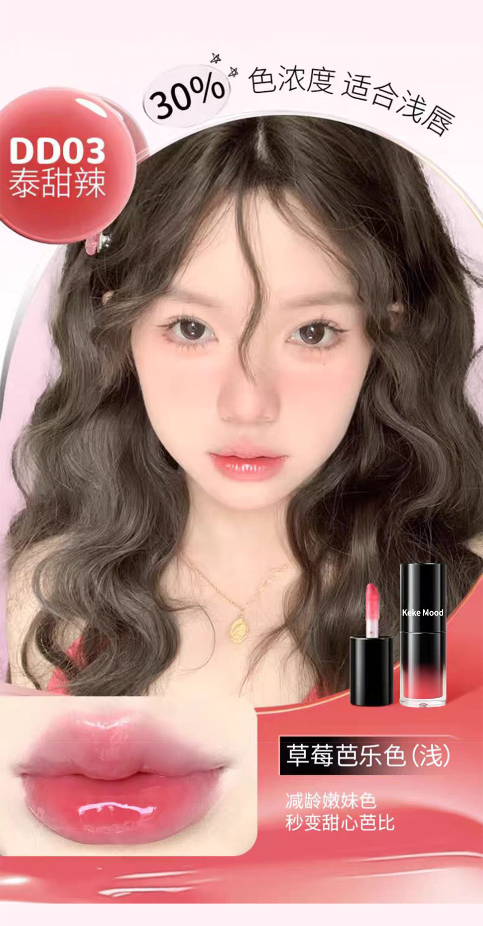 kekeMood水波凝光唇蜜唇釉显白易上色镜面口红学生党平价批发