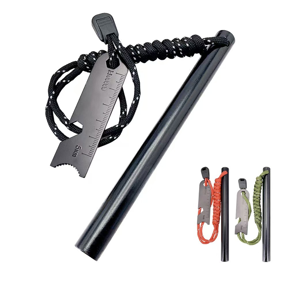 跨境热销户外打火石镁取火棒求生 伞绳带刮片 野营荒野求生取火器