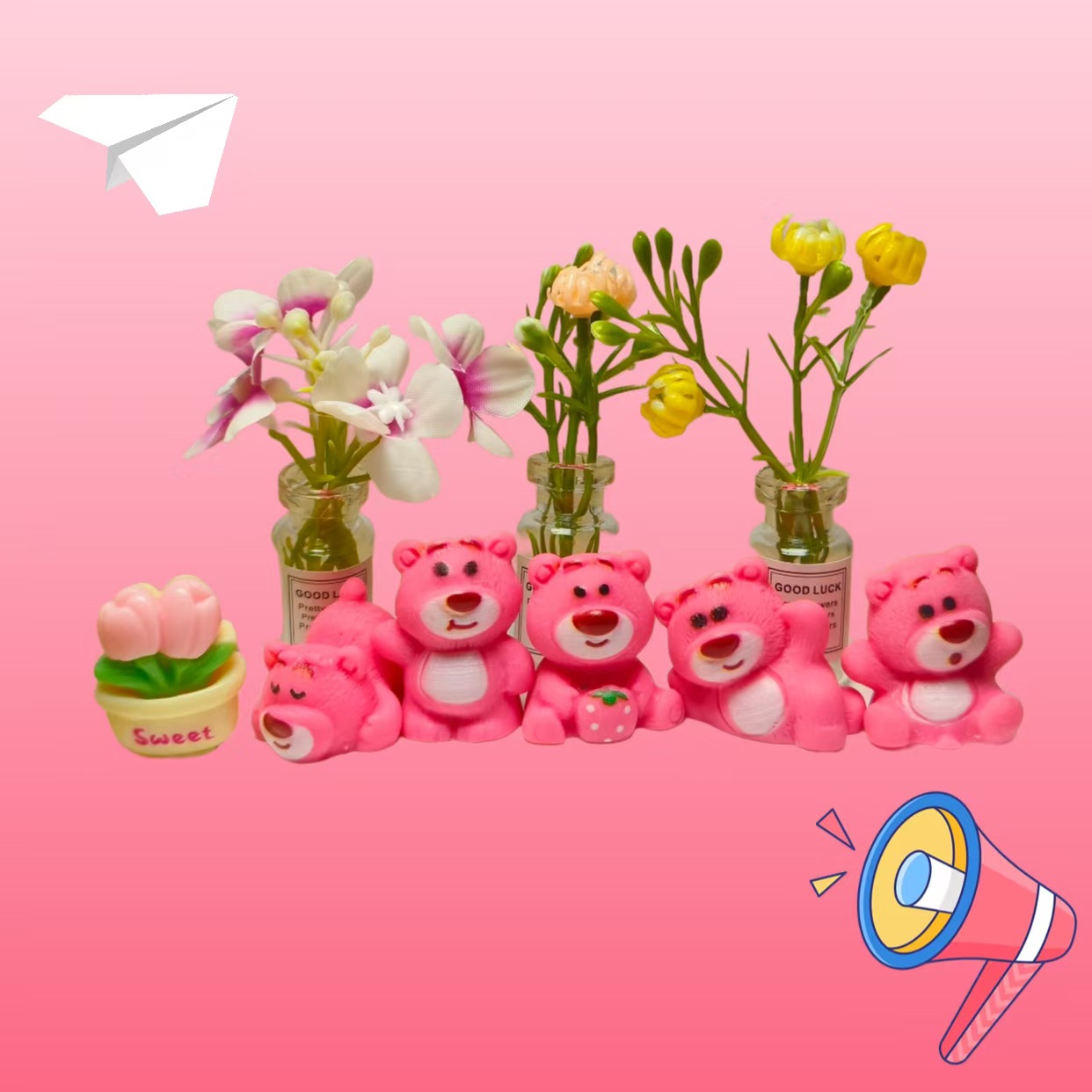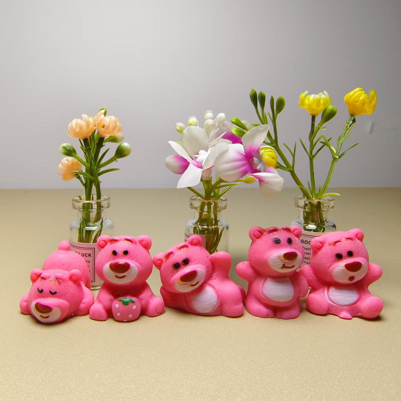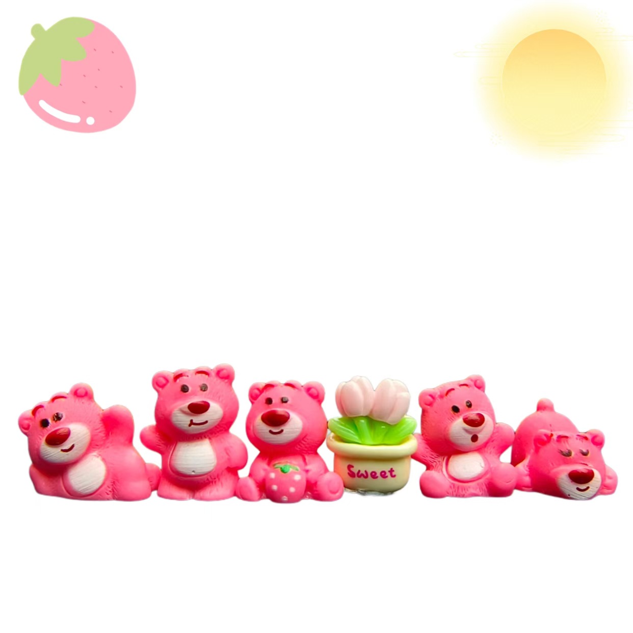 色の分類 座っているイチゴクマ,横向きに寝そべるイチゴクマ,イチゴを抱きしめるイチゴクマ,立っているイチゴクマ,横たわるイチゴクマ