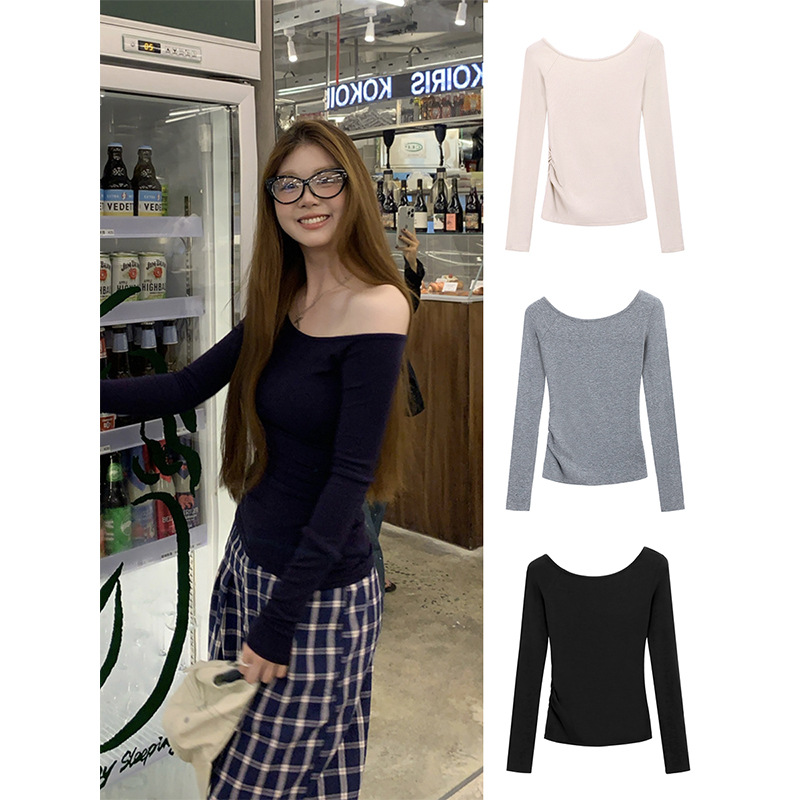 ギャルのタイトな肩の長袖のtシャツの女性2025新型の春と秋の底のシャツはやせています。