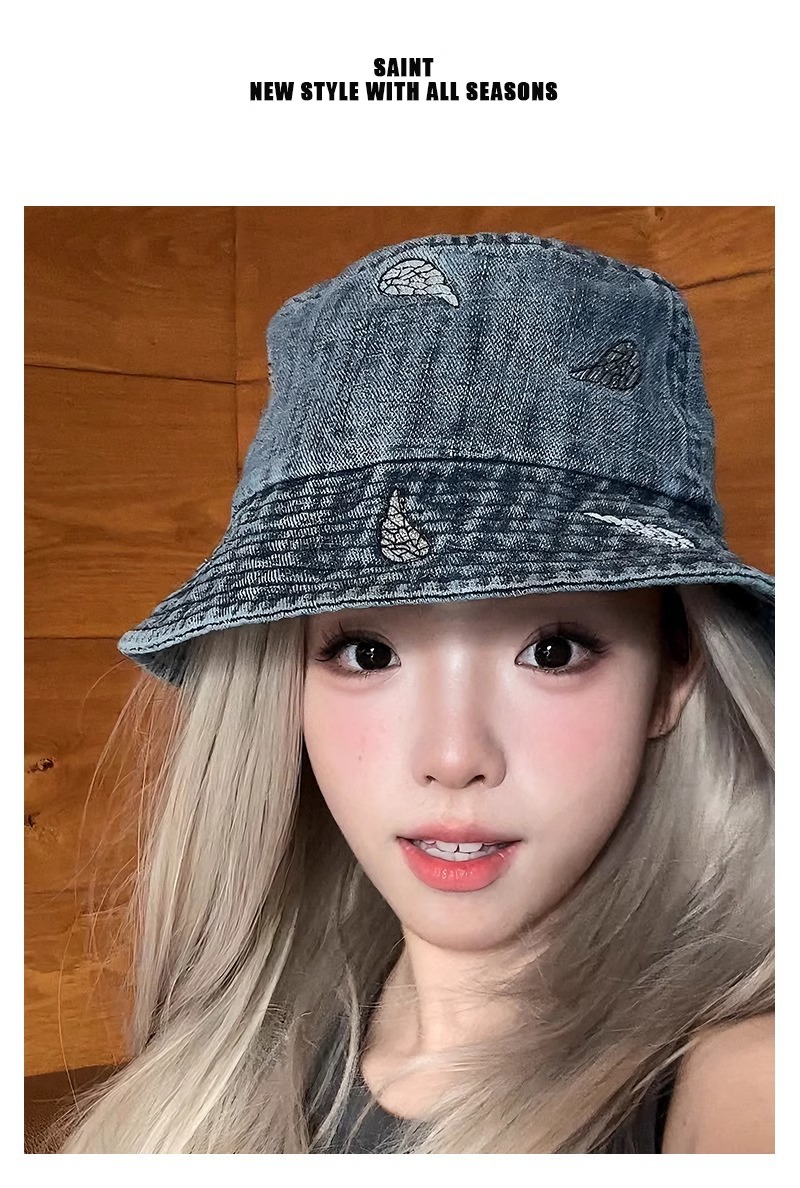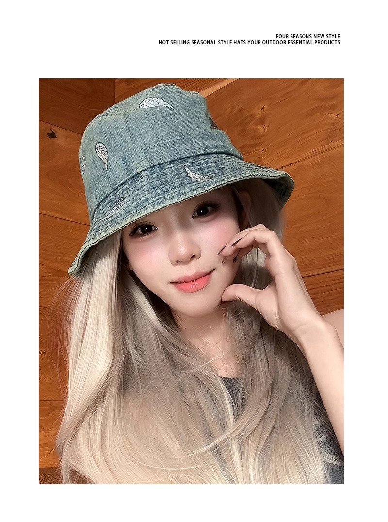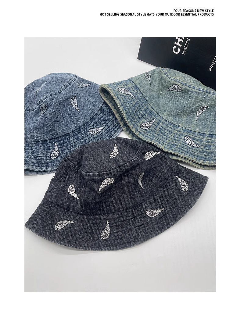 カウボーイ漁夫帽女2025春夏新作葉刺繍素顔日よけ帽子アウトドア旅行日焼け止め盆帽子男
