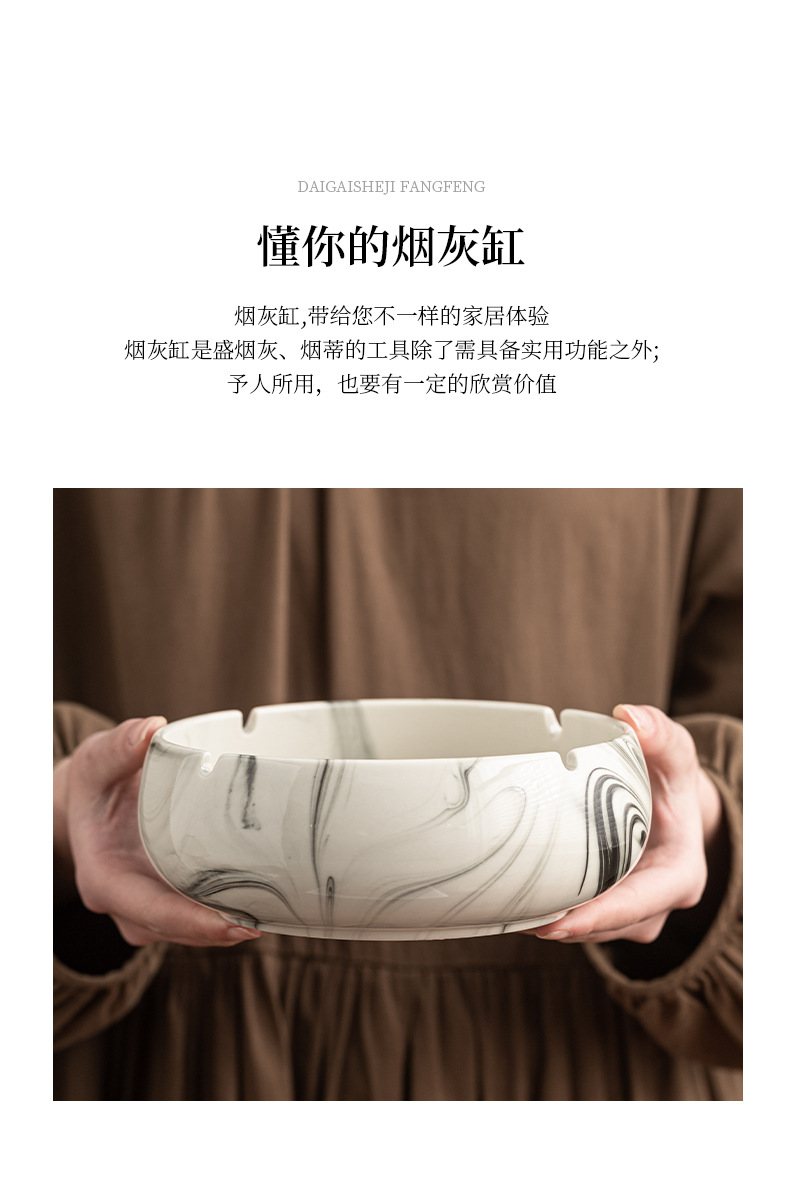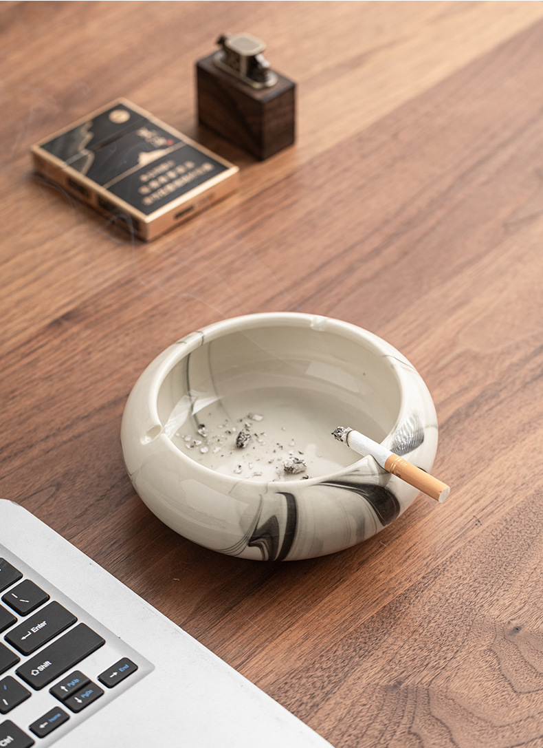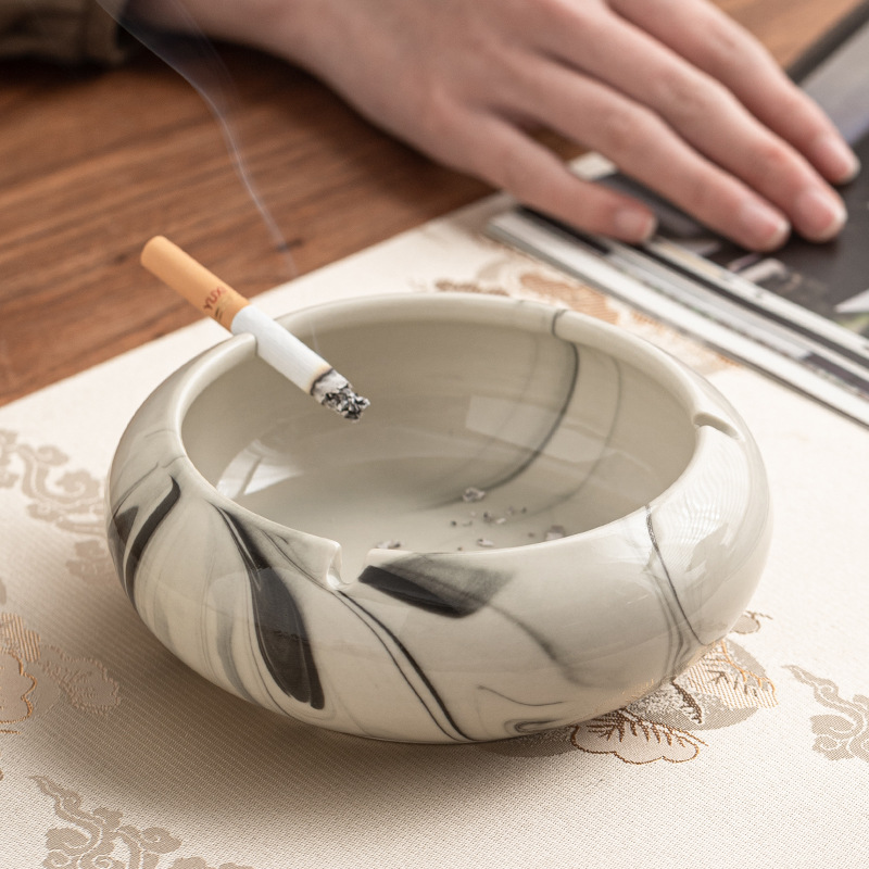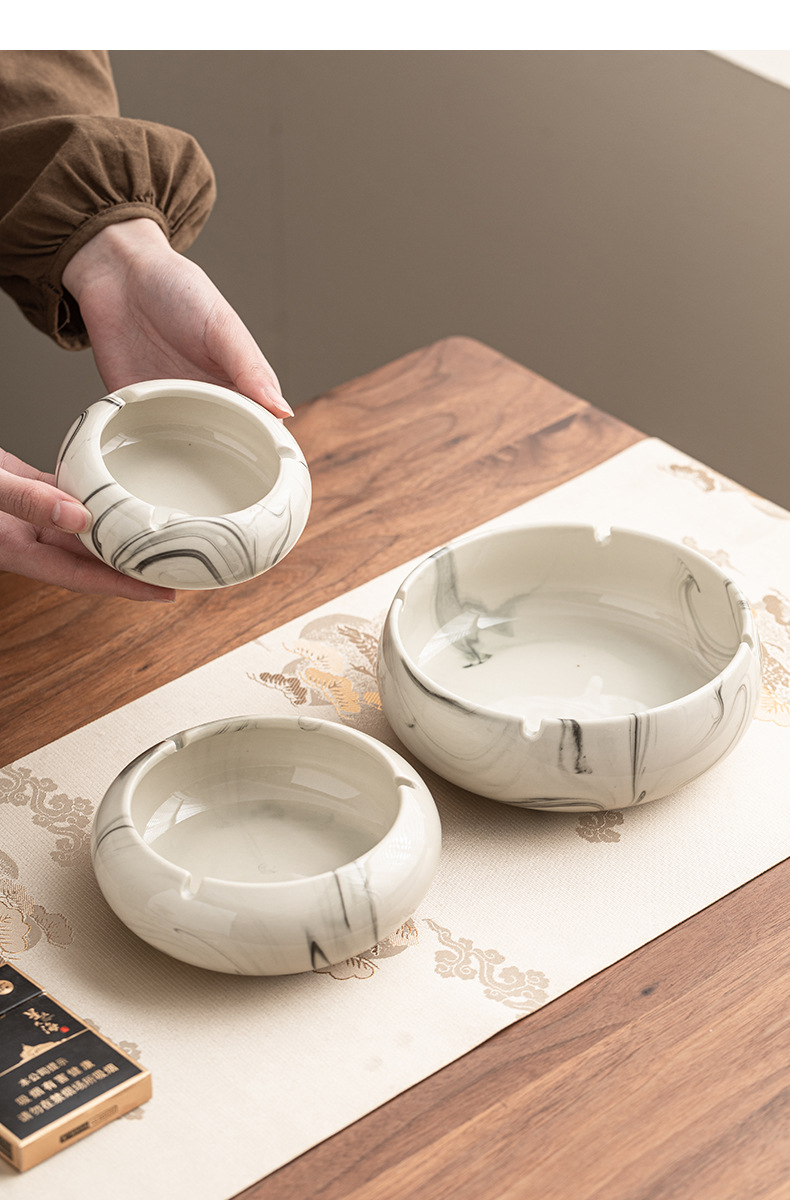 灰皿陶磁器家庭用創意潮流大理石紋客間大サイズ高級感灰皿オフィス卸売り