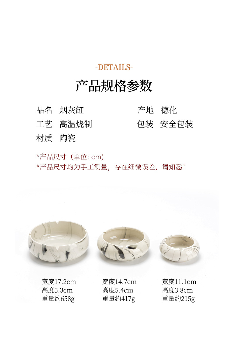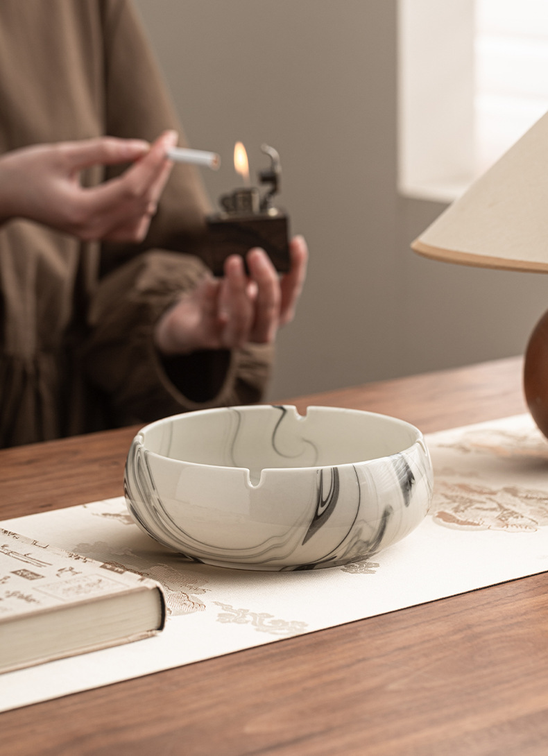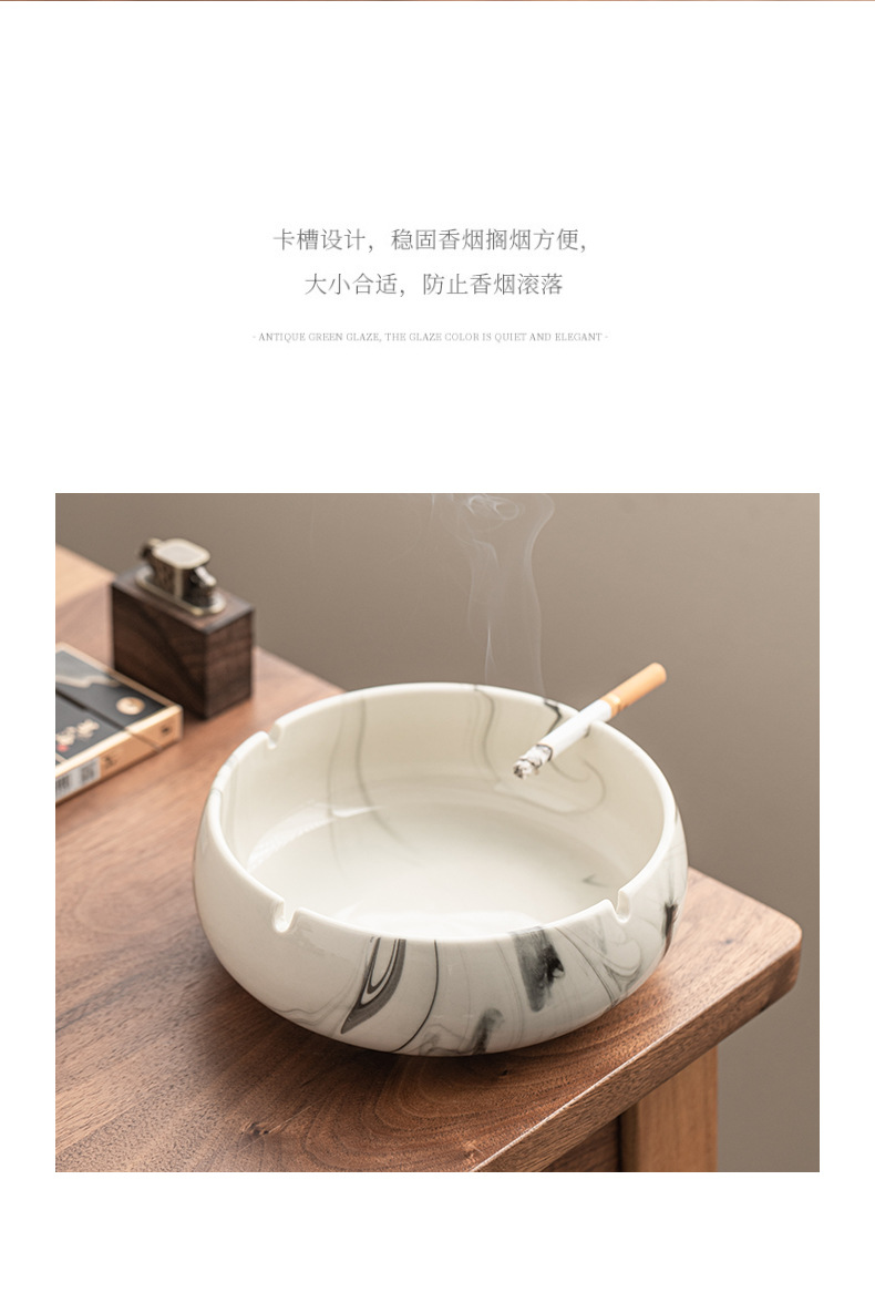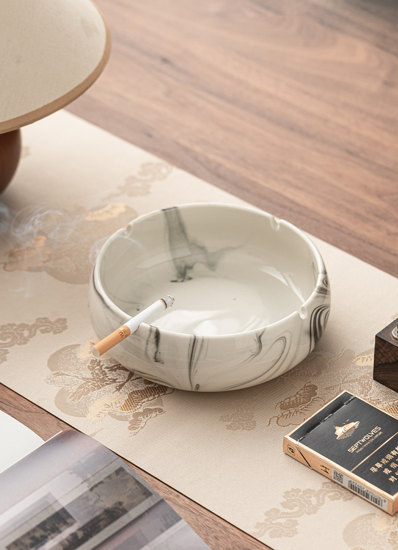 灰皿陶磁器家庭用創意潮流大理石紋客間大サイズ高級感灰皿オフィス卸売り