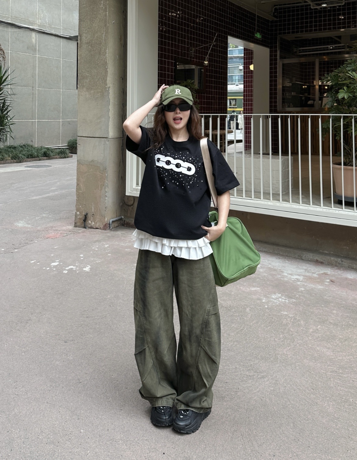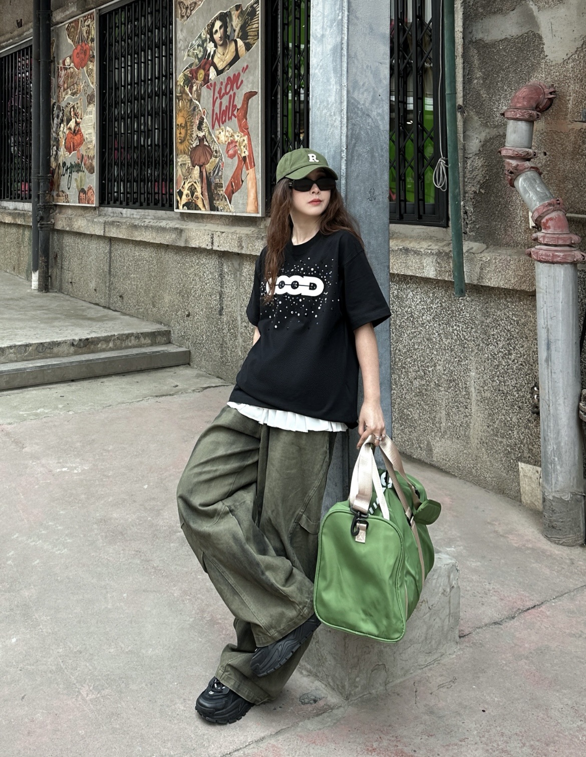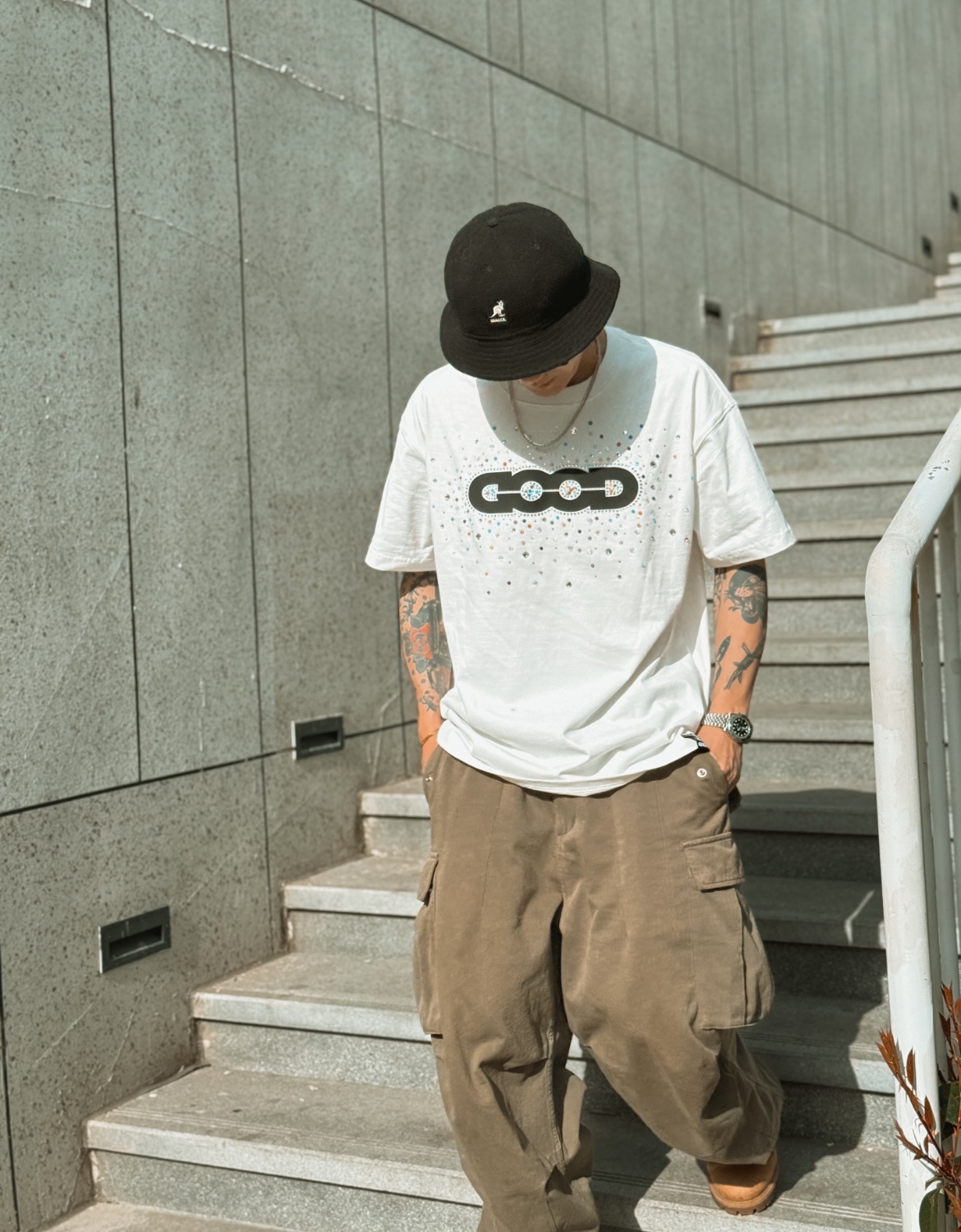 GOODヘビーウェイト100%コットンブロガー愛用パール付き半袖男女兼用Tシャツトレンドブランドカジュアルルーズフィット国民的トレンド