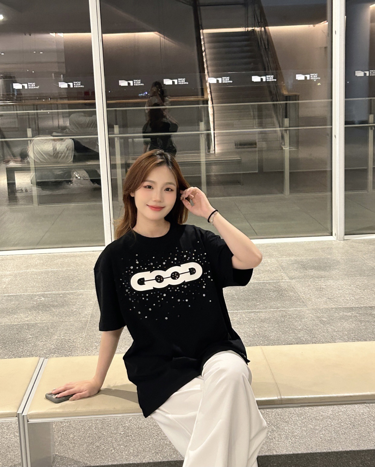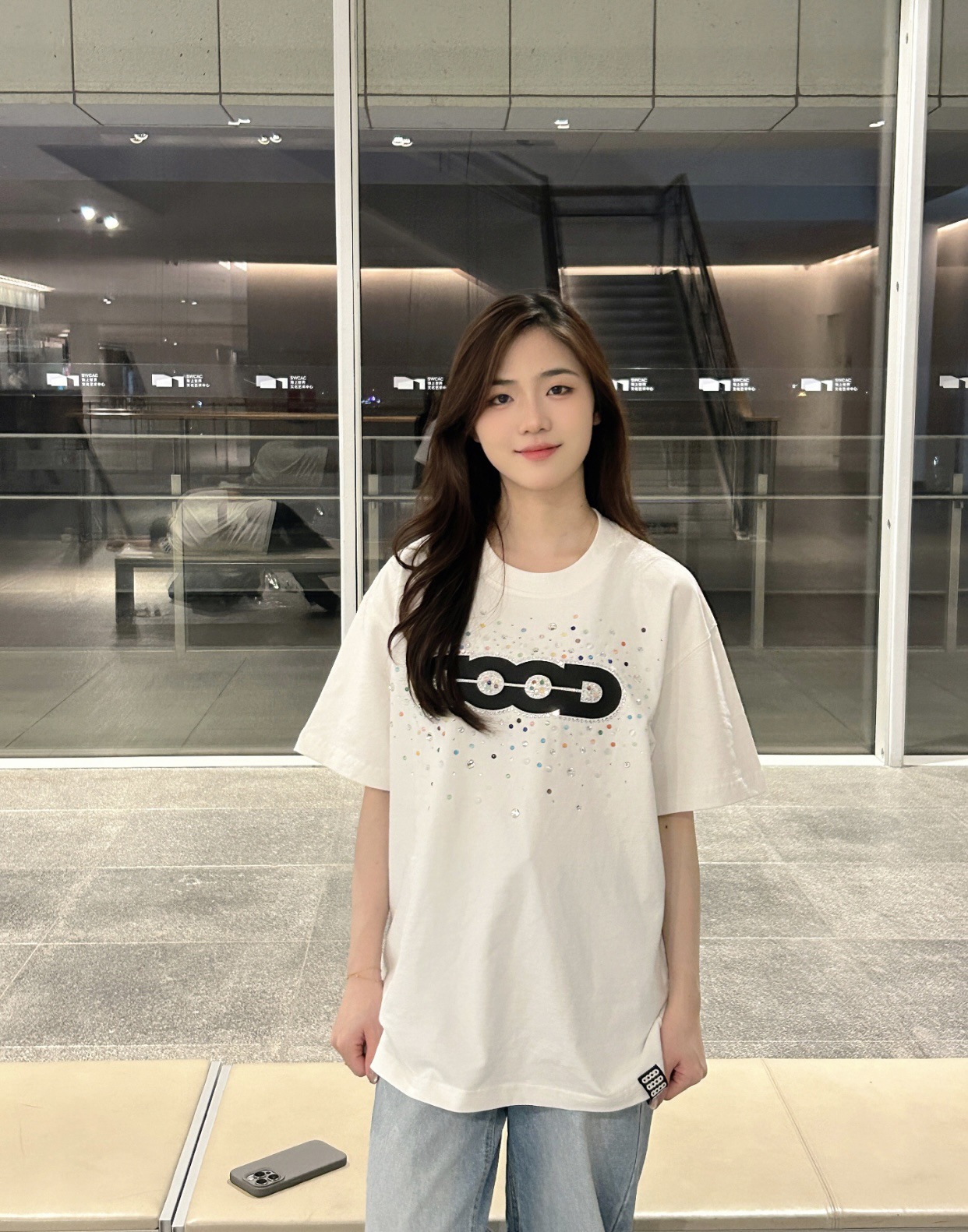 GOOD新純色真珠ロゴ軽贅沢ファッション高級感半袖tシャツ男女モデル対外貿易tシャツ卸売り