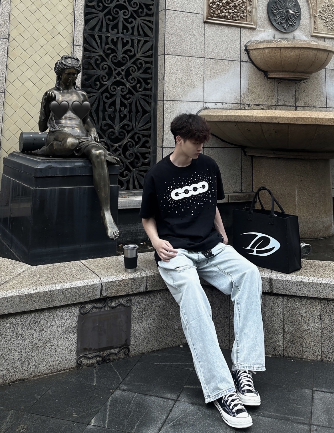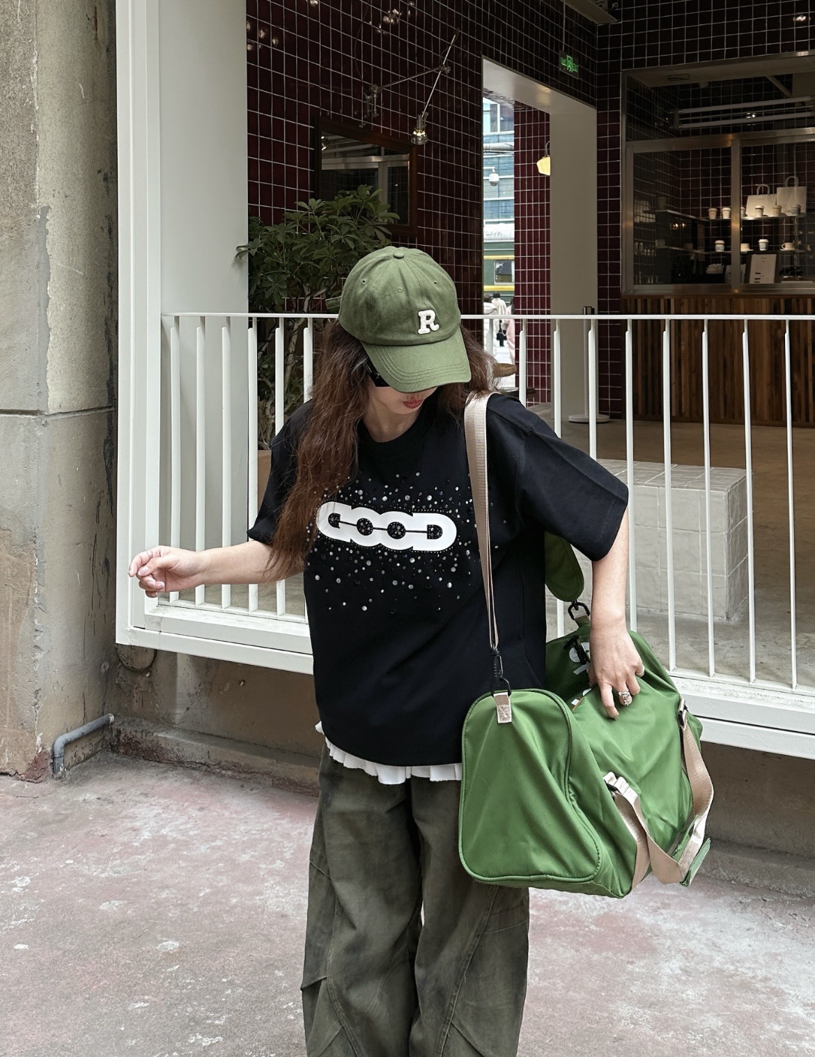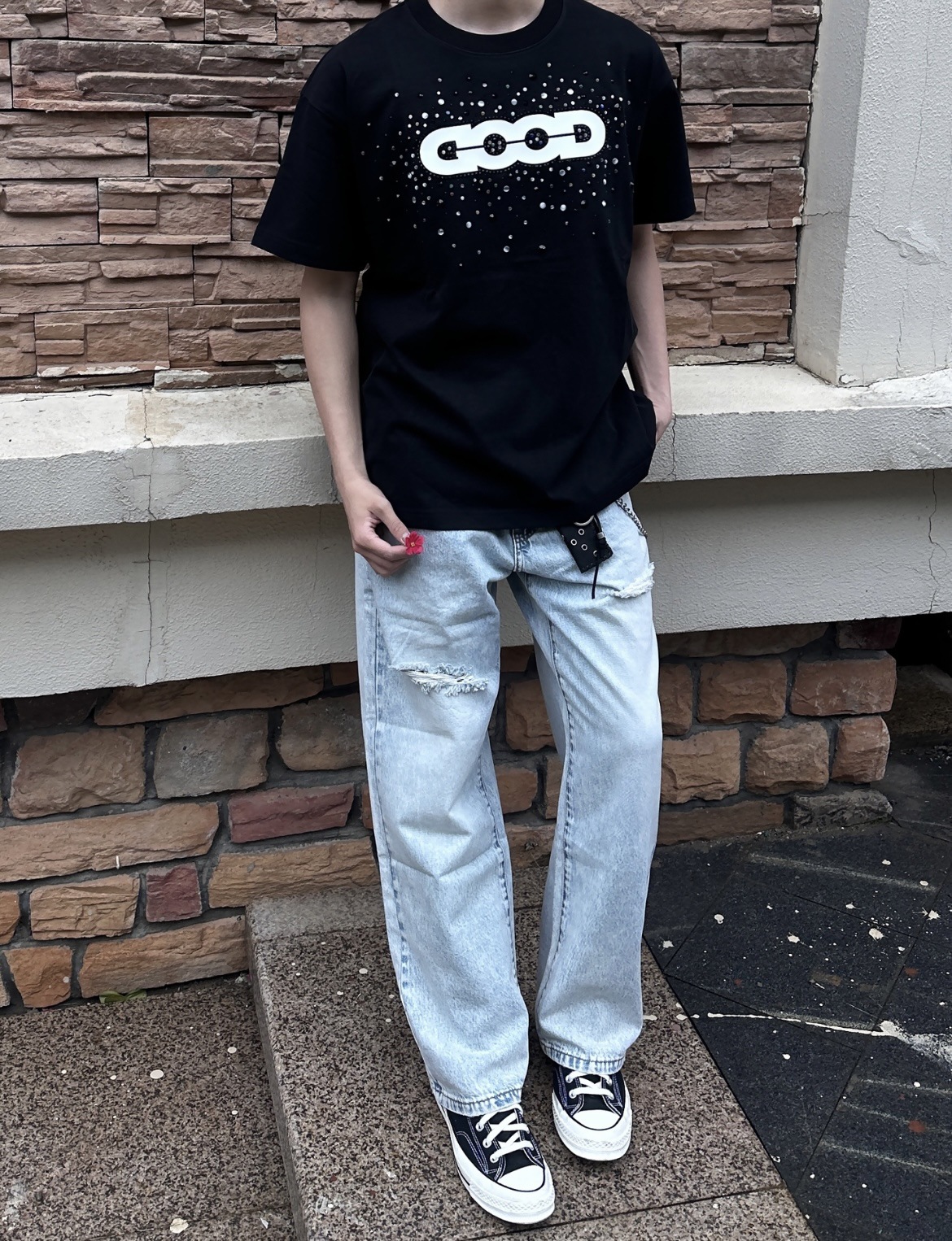 正規版GOODBRAND老白同型半袖スパンコールスローガン入りベーシックTシャツ男女兼用国民風ファッション