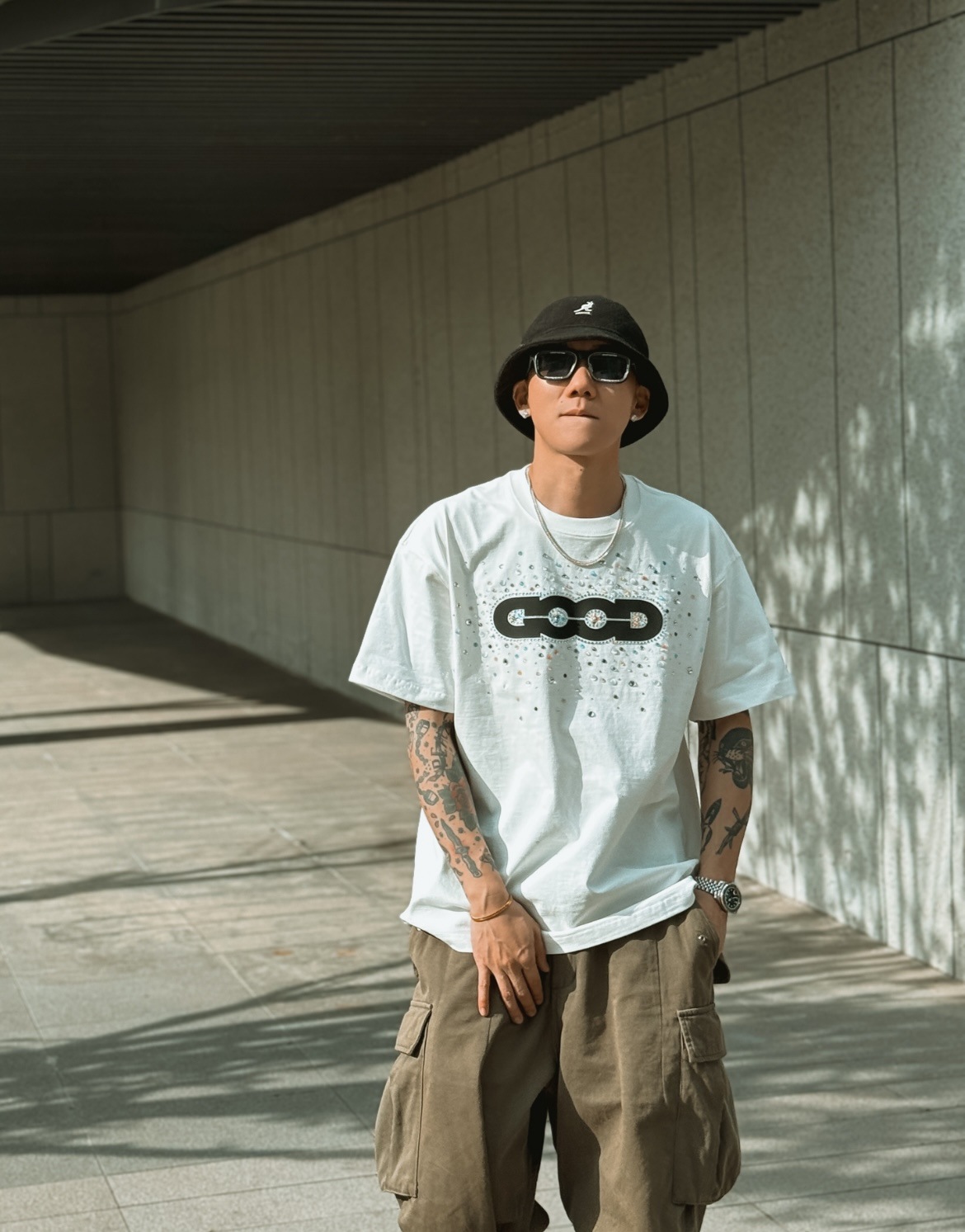 24夏の国潮朱志鑫と同じGOODBARAND透かし彫りカラードリル発泡プリント男女のtシャツ半袖