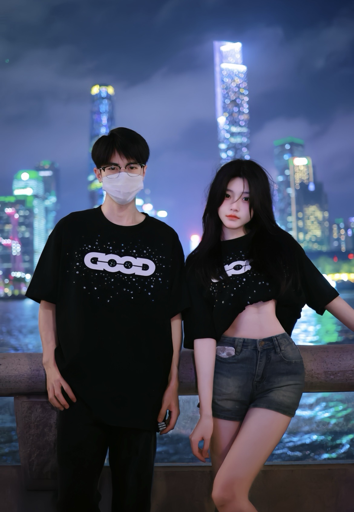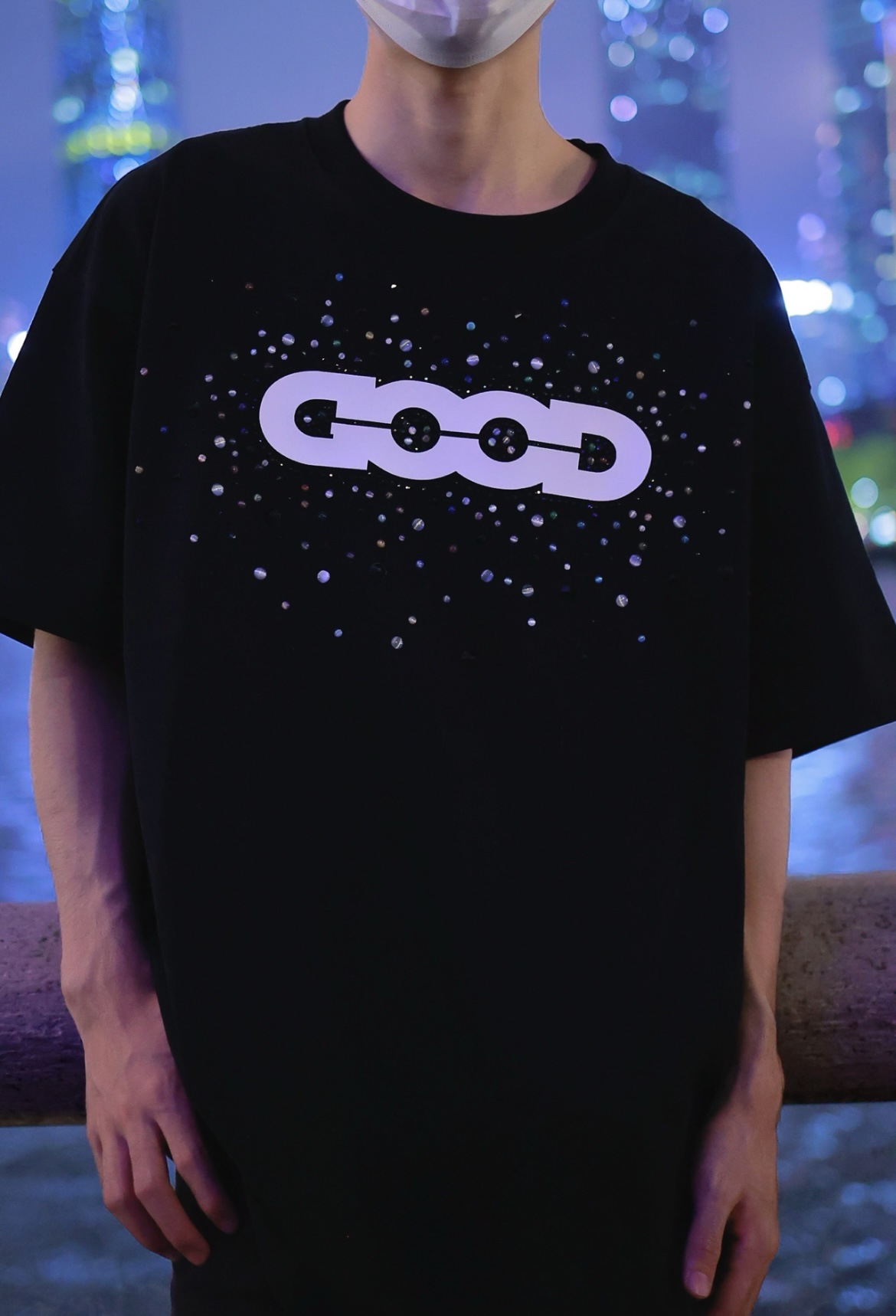 朱志鑫同型半袖GOODBRAND透かし彫りロゴカラードリル発泡プリントGOOD男女カップルtシャツ