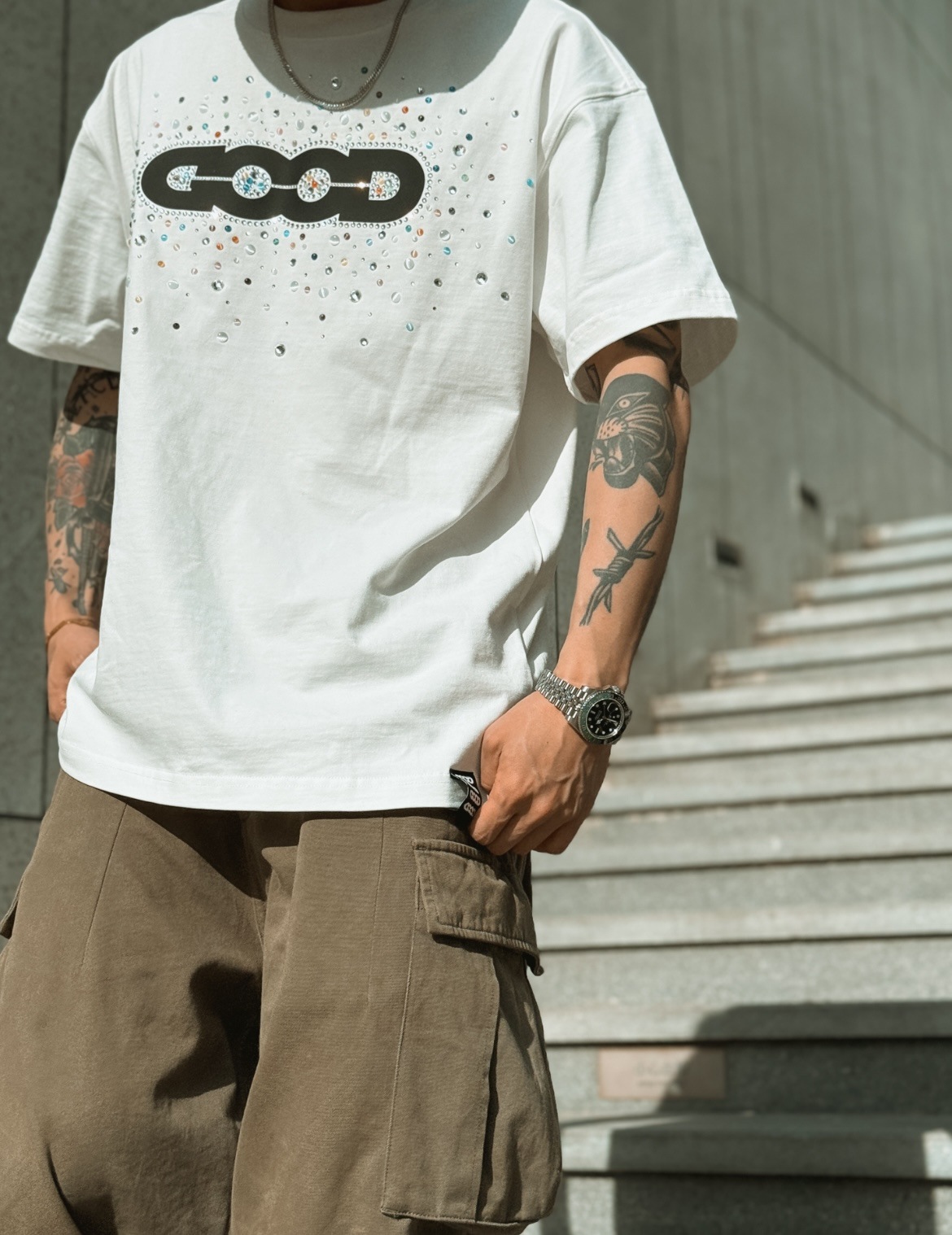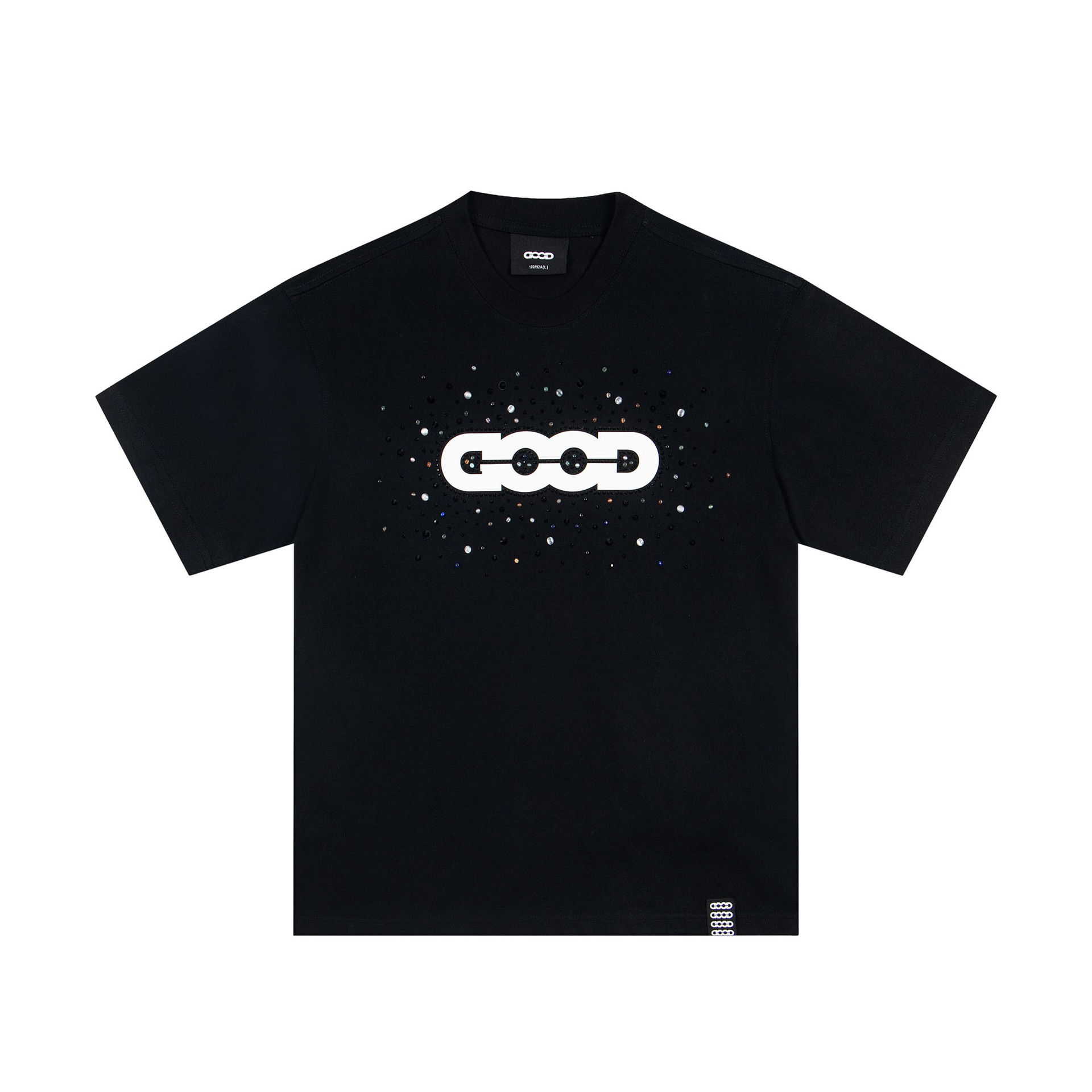 不睡美潮GOOD街头嘻哈风烫钻字母高级感宽松男女纯棉潮流短袖T恤