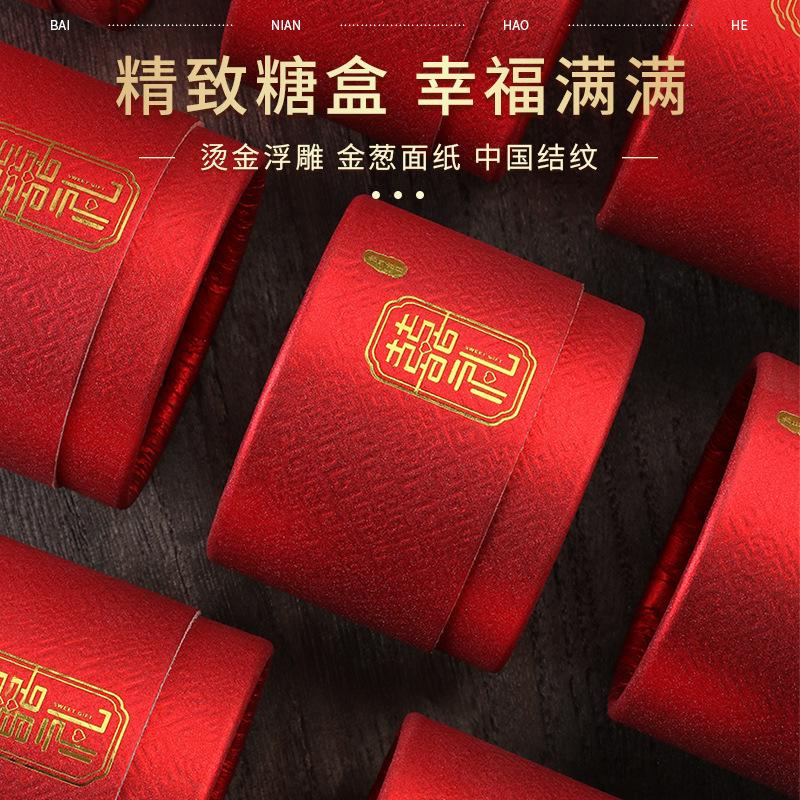 新型結婚喜糖箱結婚式専用キャンディーギフト箱婚約中国風紙箱円形包装空箱