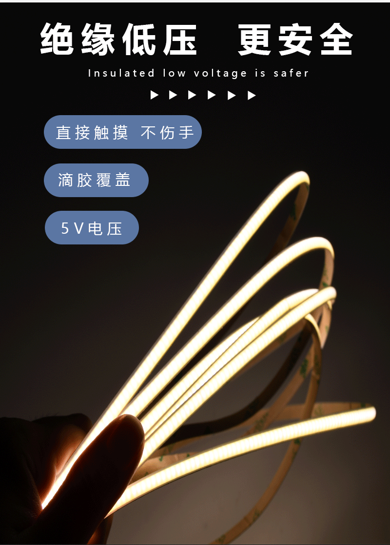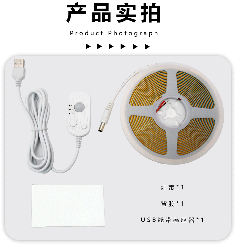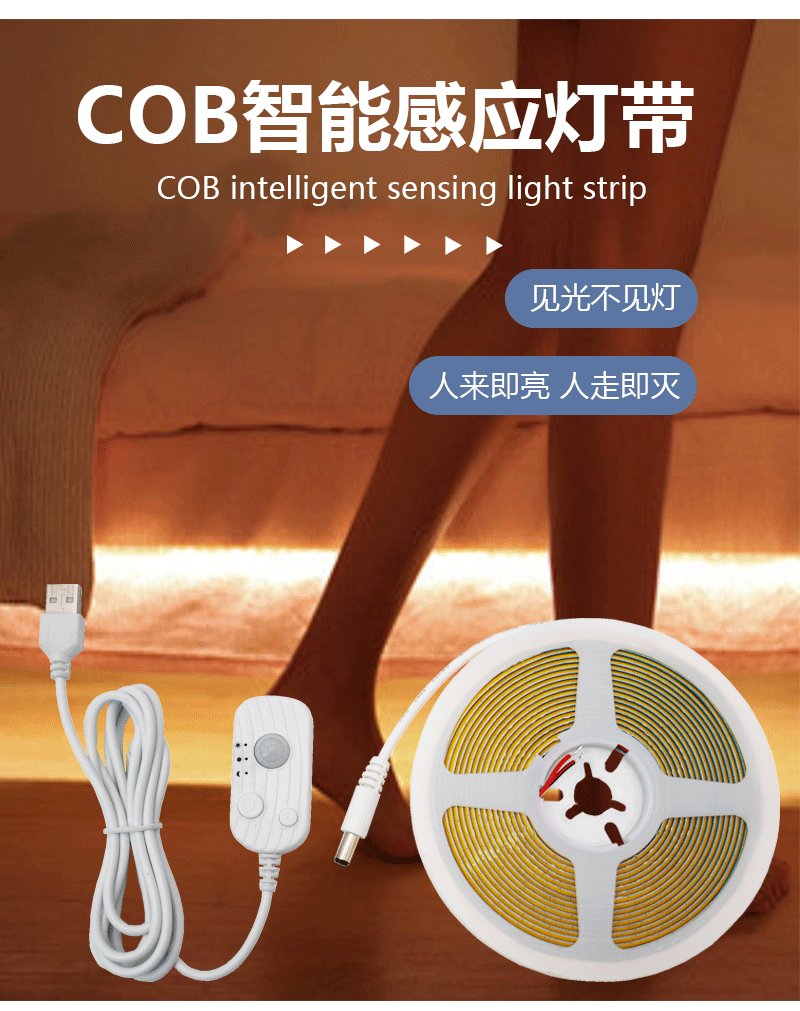 跨境电商USB 5V人体感应cob灯带智能LED灯条衣柜橱柜人体感应灯带