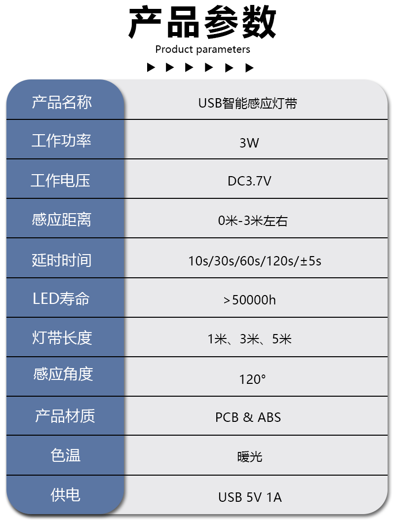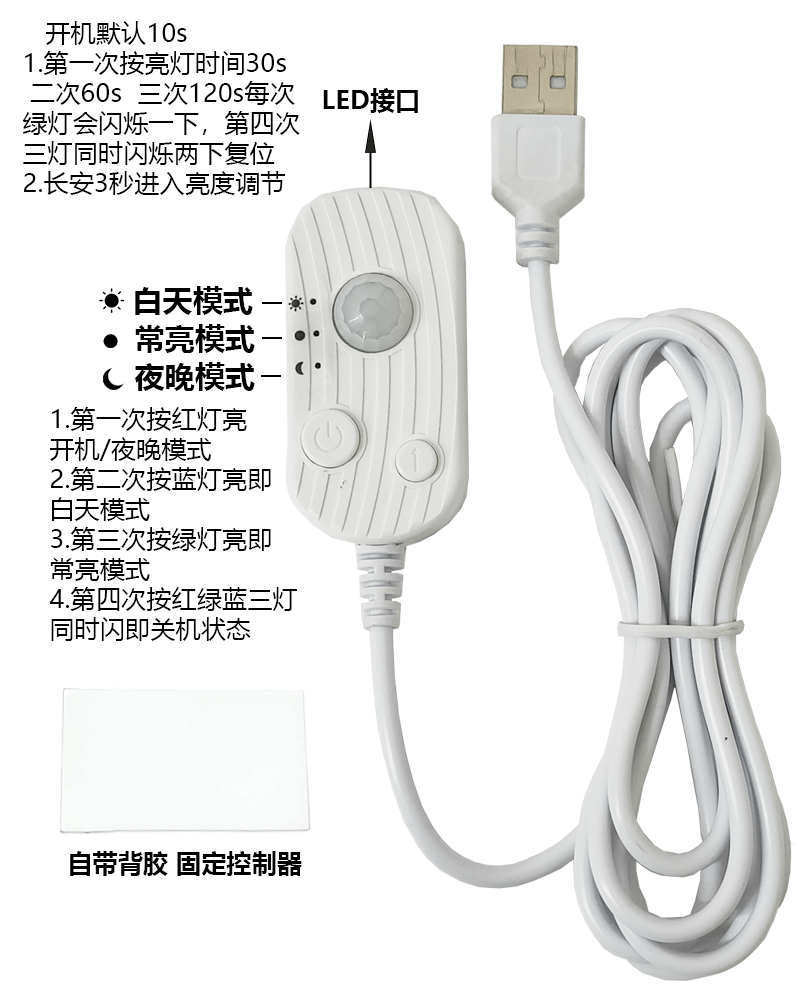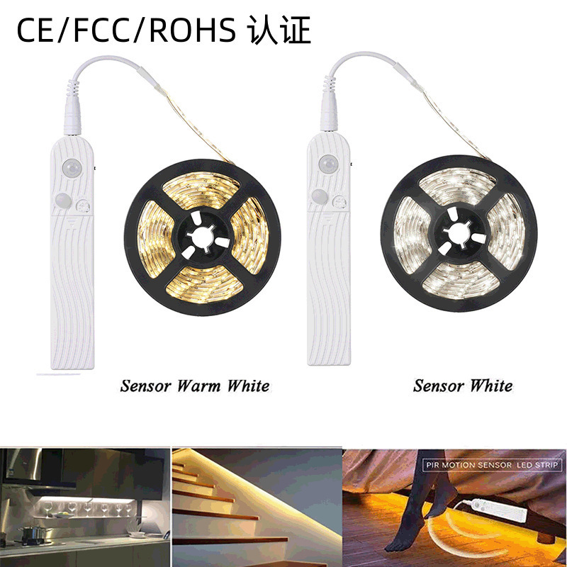 智能人体感应灯带 led红外感应小夜灯5V电池盒卧室衣柜橱柜软灯条