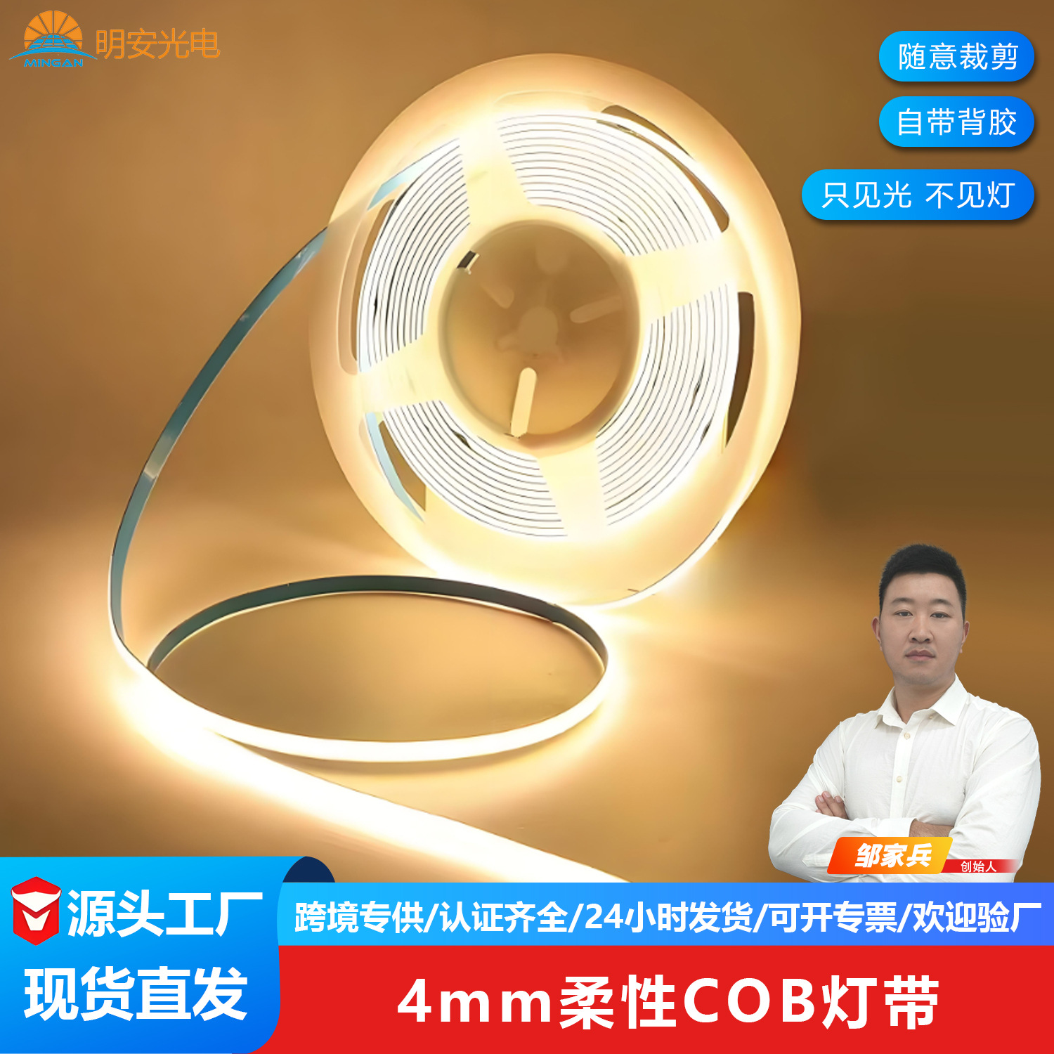 4mmの超狭い自己接着ランプ付きのCOBランプは、キャビネット付きのタンス付きのキャビネット付きのリニア照明5v12v24vCOBランプです。