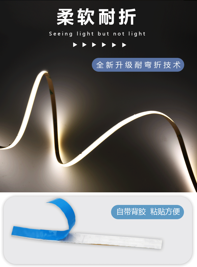 24V追光LEDライトテープ、スマートホーム雰囲気COB、家庭用ウェディングCOB、流水高演色、デュアルカラー温度、卸売