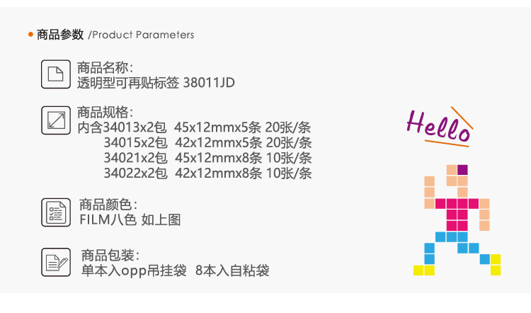 34012 プラスチック透明ラベルノートホルダー 2 個入り 45*25mm 2 個/袋,34013 透明プラスチック透明表示ラベル 45×12mm(蛍光5色) 5枚/袋,34014 プラスチック透明ラベルメモ用紙 (45*12mm 3 枚 + 45*25mm 1 枚) 4 枚/袋,34015 透明プラスチック透明表示ラベル(矢印) 42×12mm(蛍光5色) 5枚/袋,34020 透明プラスチック表示ラベル 45×8mm (8色) 8枚/袋,34021 透明プラスチック表示ラベル 45×12mm(蛍光8色) 8枚/袋,34022 透明プラスチック表示ラベル(矢印) 42×12mm(蛍光8色) 8枚/袋,34028 取り外し可能な表示ラベル、透明プラスチック、45*12mm (2 色混合)、2 ストリップ/カード,34031 透明プラスチック表示ラベル 45×12mm(蛍光5色) 5枚/袋,34032 透明プラスチック表示ラベル 45*12mm (5 色ヘッダー) 5 個/袋,34033 透明プラスチック表示ラベル 45*12mm (5色中心マーク) 5枚/袋,34034 プラスチック透明ラベルノート 45*12mm (矢印 4 平頭 4. 混合 8 色) 8 枚/袋,34035 透明プラスチックラベルノート 45×12mm (8色混合) 8枚/袋,34036 透明プラスチックラベルノート 45×12mm(8色ヘッダー) 8枚/袋,34039 再取り付け可能な耐久性のある分類インデックスシート 半透明プラスチック 38*25mm (ヘッダー4色) 4枚/袋,34040 粘り付けることができる耐久性のある分類インデックスシート 半透明プラスチック 38*51mm (ヘッダー4色) 4枚/袋,34050 リアタブルポータブルラベル(透明プラスチック) 45×25mm+45×12mm(4色ヘッダー) 2枚/袋,34052 取り外し可能な透明プラスチック表示ラベル 2 枚/袋、蛍光色 2 色。,34053 取り外し可能な透明プラスチック表示ラベル..20 枚/ストリップ..3 ストリップ/袋..蛍光 3 色,34054 取り外し可能な透明プラスチック表示ラベル 45*25mm 4 個/袋,34055 取り外し可能な透明プラスチック表示ラベル 4 個/袋白 + ヘッダー印刷,38011JD 透明プラスチック表示ラベルコンビネーションパック 45*12mm 8 袋/パック (4 つの組み合わせ),2色蛍光フィルム表示ラベル 240枚 インデックスラベル 45×25mm 取り外し可能 6袋 34052-J6,3色蛍光フィルム表示ラベル 360枚 インデックスラベル 45×25+45×12mm 取り外し可能 6袋 34053-J6,4色蛍光フィルム表示ラベル 480枚 インデックスラベル 45×12mm 取り外し可能 6袋 34054-J6,4色蛍光フィルム表示ラベル 480枚 インデックスラベル 45×12mm 取り外し可能 6袋 34055-J6