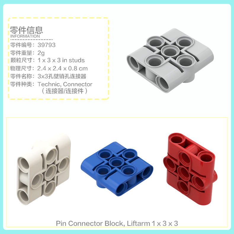 【50g】39793 国産積み木 小粒部品 テクノロジーパーツ 機械付属品 3x3 ピン穴コネクタ
