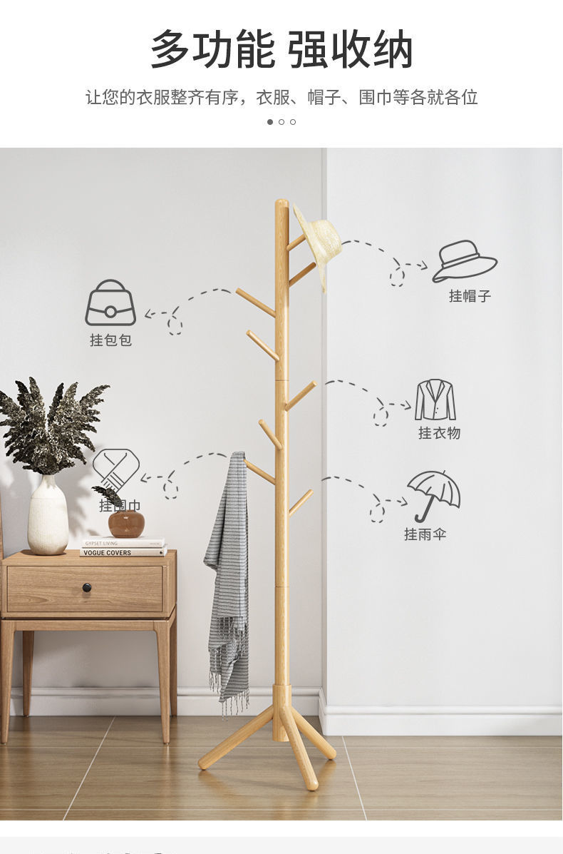 無垢材の衣類ラック、家庭用フロアスタンド式衣類ハンガー、室内用シンプルな寝室収納棚、ハンガーロッド
