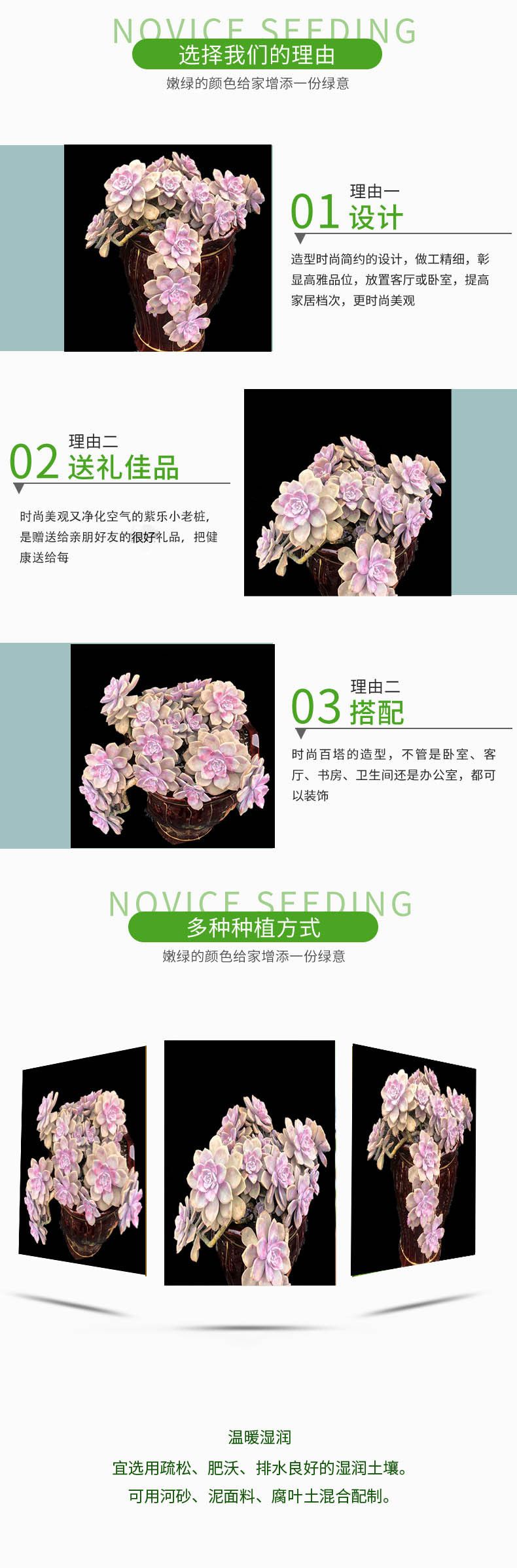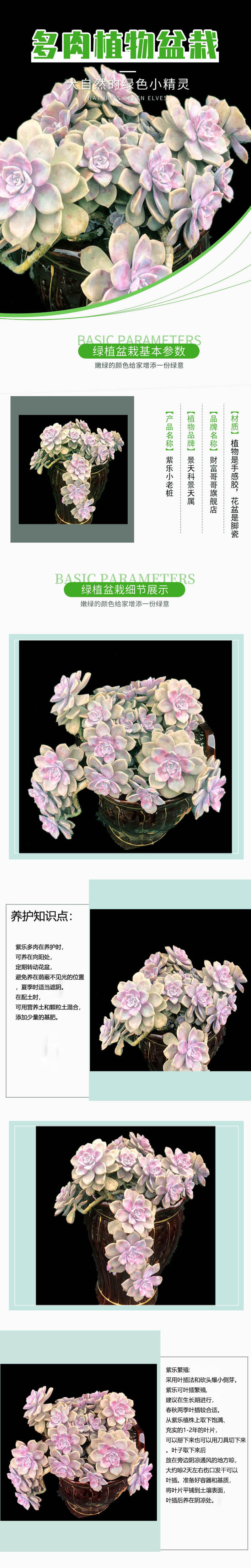 Zile Xiaolaozhu 多肉植物組み合わせ多肉植物パッケージゴージャスな風車緑の植物鉢植えオフィスピンクの花