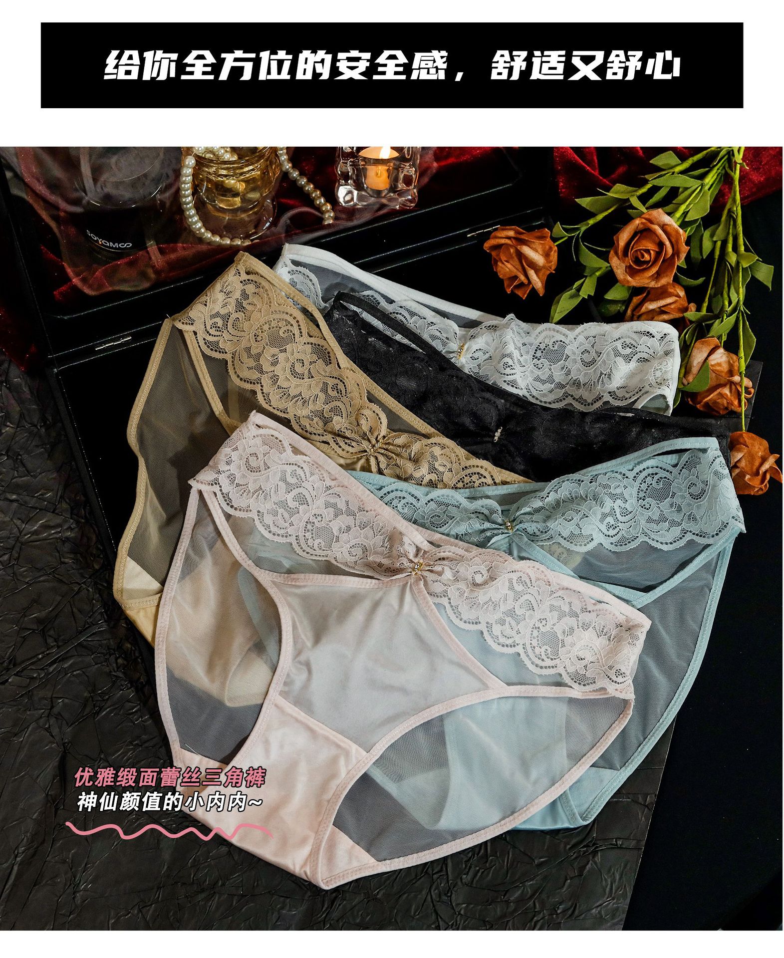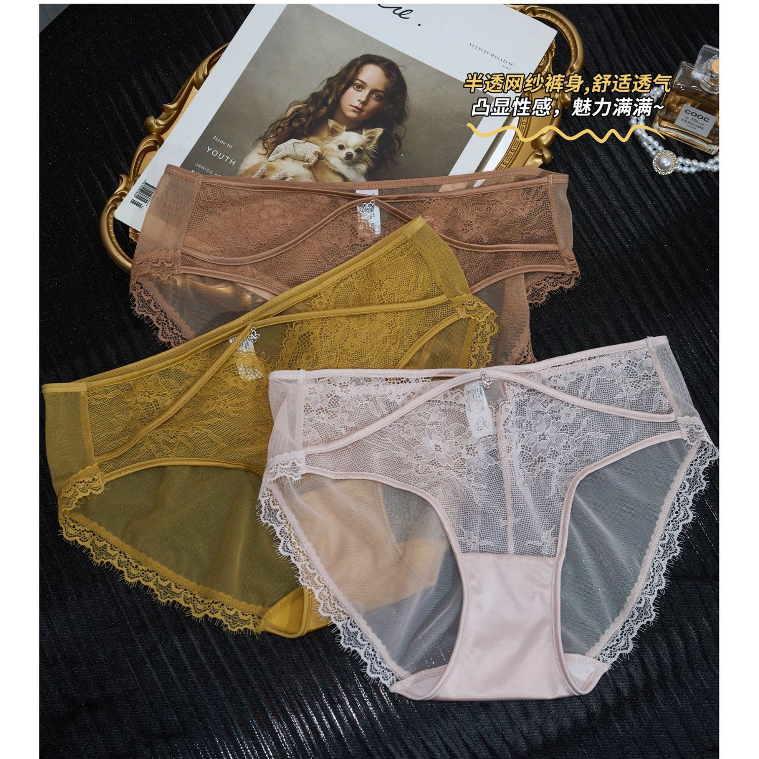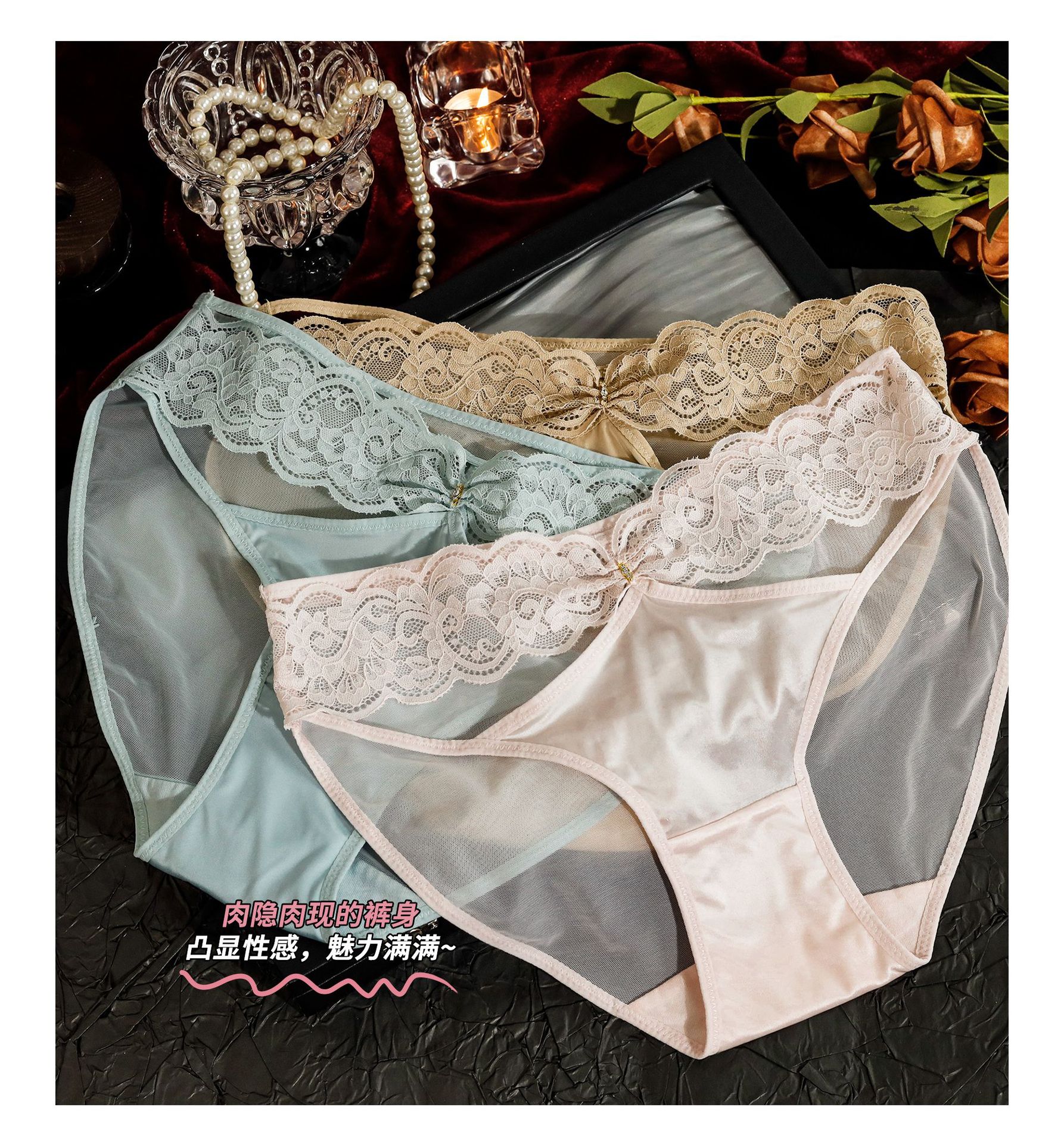 女神スタイル〜通気性が良く蒸れない高級レースメッシュ女性下着、軽くてセクシーな女性用ローウエストブリーフ
