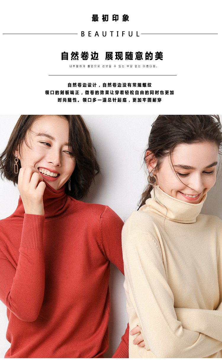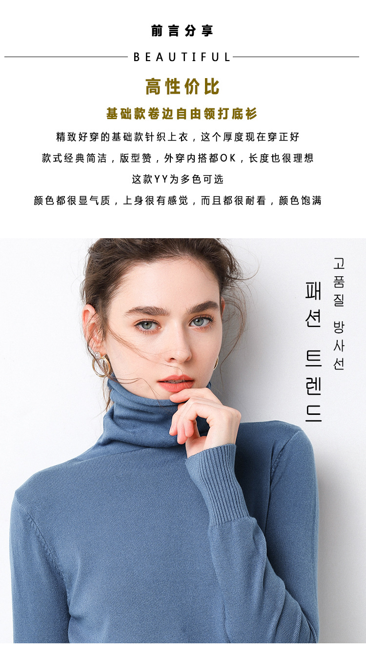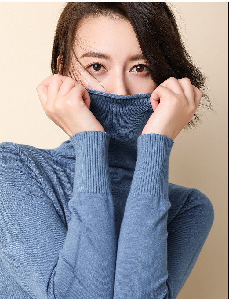 半高襟の底のシャツの女性のセーターは頭の洋気をかぶせます。