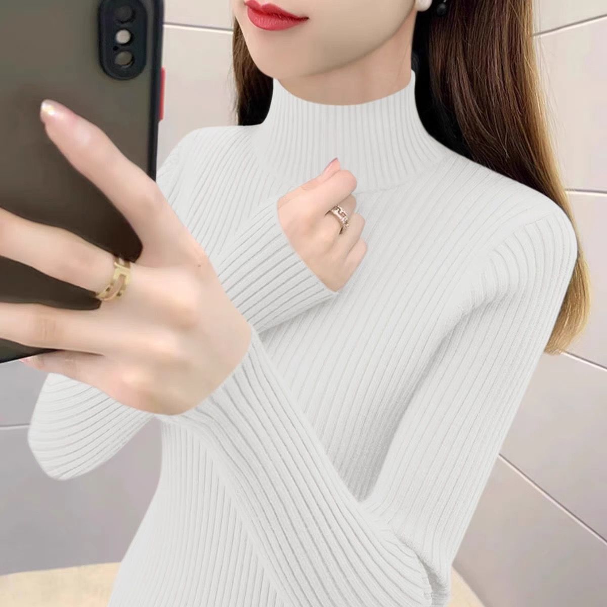 上衣女针织衫加厚款修身打底衫女新款显瘦2025毛衣秋冬内搭长袖女