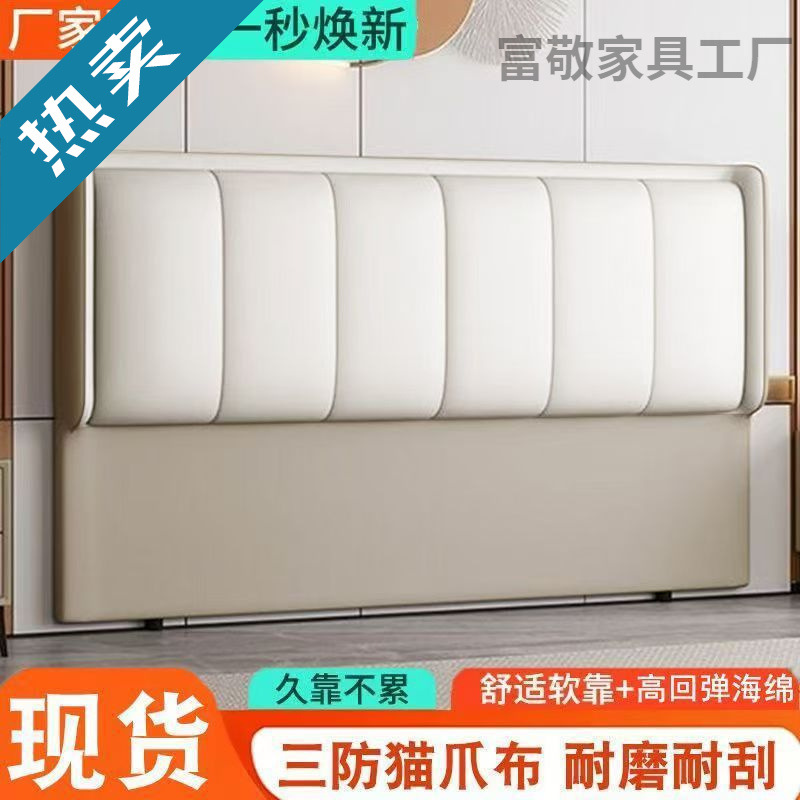 床头软包靠背板2025新款一体落地实木猫爪皮生态皮实木床靠背单买